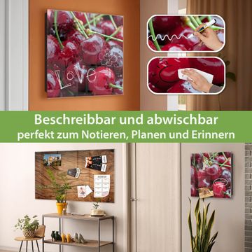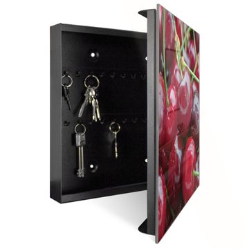 Bringe Ordnung und Eleganz in deinen Eingangsbereich mit dem banjado Schlüsselkasten Motiv Motiv Kirschen. Die moderne Schlüsselbox kombiniert funktionales Design mit hochwertiger Verarbeitung und wird so zu einem echten Hingucker in Flur, Büro oder Ferienwohnung. ✅ Stilvolle Schlüsselaufbewahrung mit Glasfront im Motiv Motiv Kirschen Der Design-Schlüsselkasten Motiv Motiv Kirschen bietet Platz für bis zu 50 Schlüssel, die auf 5 stabilen Reihen mit je 10 Haken übersichtlich verstaut werden. Mit seinen kompakten Maßen von 30 x 30 x 5 cm passt die Schlüsselbox perfekt auch in kleinere Räume. Der schwarz lackierte Stahlkorpus mit rechts angeschlagenem Türscharnier harmoniert mit der Glasfront und fügt sich nahtlos in jedes Wohnambiente ein. Ob als Schlüsselorganizer für Zuhause oder als praktische Lösung für Büros, Praxen und Gewerbe, der banjado Schlüsselkasten sorgt für Ordnung und Übersicht. Dank der magnetischen, mit Kreidestiften beschreibbaren Glasfront kannst du Notizen anheften oder Termine direkt auf der Oberfläche festhalten. Die Schlüsselbox Motiv Motiv Kirschen zur Wandmontage wird inklusive Befestigungsmaterial geliefert und ist schnell angebracht. So hast du deine Schlüssel jederzeit griffbereit und zugleich stilvoll verstaut. Mit diesem banjado Schlüsselkasten Motiv Motiv Kirschen kombinierst du praktische Aufbewahrung mit stilvollem Wohndesign. Ob privat oder geschäftlich, die Schlüsselbox sorgt für mehr Ordnung, Übersicht und ein wohnliches Ambiente.Vorteile im Überblick