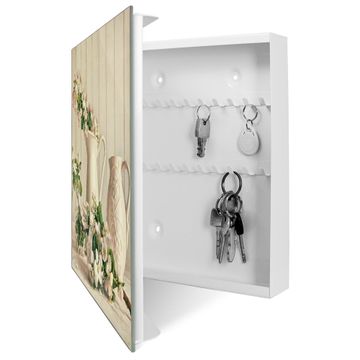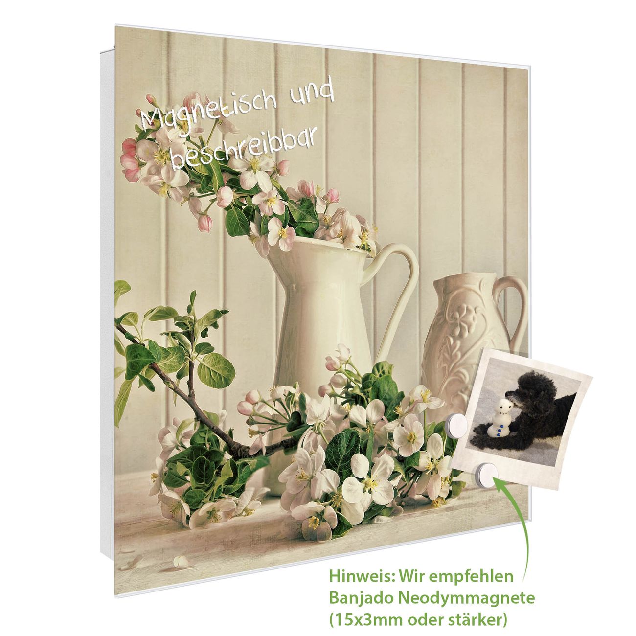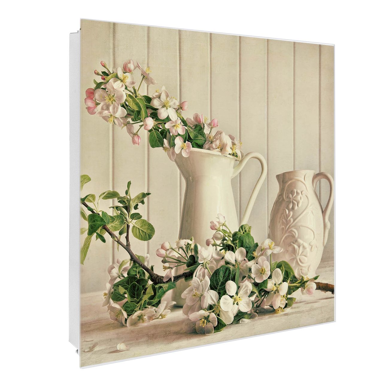 Bringe Ordnung und Eleganz in deinen Eingangsbereich mit dem banjado Schlüsselkasten Motiv Motiv Kirschzweige. Die moderne Schlüsselbox kombiniert funktionales Design mit hochwertiger Verarbeitung und wird so zu einem echten Hingucker in Flur, Büro oder Ferienwohnung. ✅ Stilvolle Schlüsselaufbewahrung mit Glasfront im Motiv Motiv Kirschzweige Der Design-Schlüsselkasten Motiv Motiv Kirschzweige bietet Platz für bis zu 50 Schlüssel, die auf 5 stabilen Reihen mit je 10 Haken übersichtlich verstaut werden. Mit seinen kompakten Maßen von 30 x 30 x 5 cm passt die Schlüsselbox perfekt auch in kleinere Räume. Der weiß lackierte Stahlkorpus mit rechts angeschlagenem Türscharnier harmoniert mit der Glasfront und fügt sich nahtlos in jedes Wohnambiente ein. Ob als Schlüsselorganizer für Zuhause oder als praktische Lösung für Büros, Praxen und Gewerbe, der banjado Schlüsselkasten sorgt für Ordnung und Übersicht. Dank der magnetischen, mit Kreidestiften beschreibbaren Glasfront kannst du Notizen anheften oder Termine direkt auf der Oberfläche festhalten. Die Schlüsselbox Motiv Motiv Kirschzweige zur Wandmontage wird inklusive Befestigungsmaterial geliefert und ist schnell angebracht. So hast du deine Schlüssel jederzeit griffbereit und zugleich stilvoll verstaut. Mit diesem banjado Schlüsselkasten Motiv Motiv Kirschzweige kombinierst du praktische Aufbewahrung mit stilvollem Wohndesign. Ob privat oder geschäftlich, die Schlüsselbox sorgt für mehr Ordnung, Übersicht und ein wohnliches Ambiente.Vorteile im Überblick