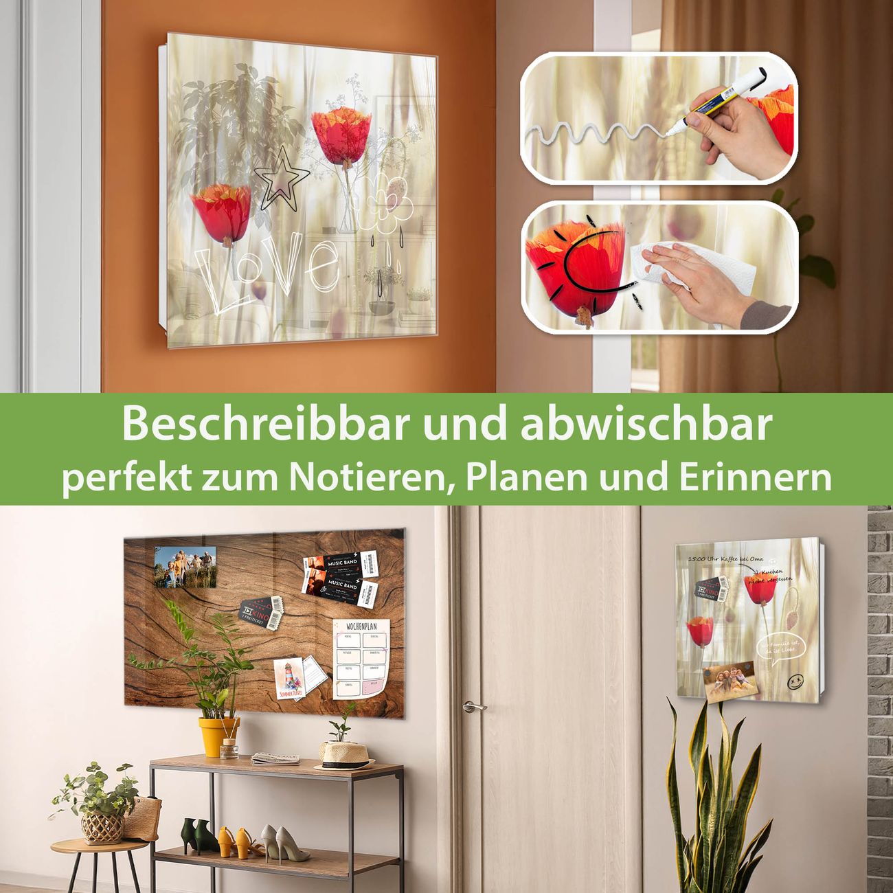 ✅ Magnetisch und mit Kreidestift beschreibbar, gehärtetes Glas, rechts angeschlagene TürOrdnung und Design in einem