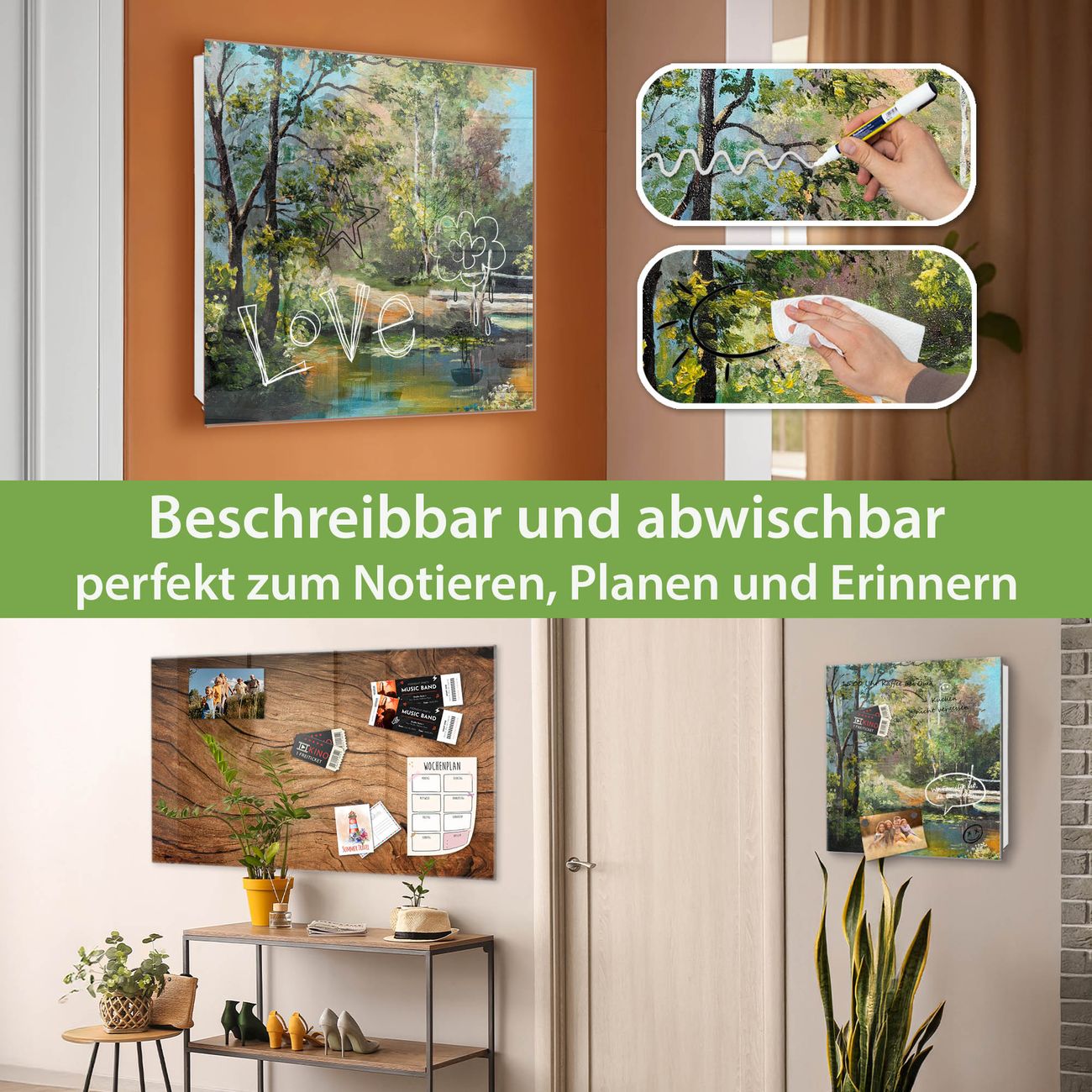 ✅ Magnetisch und mit Kreidestift beschreibbar, gehärtetes Glas, links angeschlagene TürOrdnung und Design in einem