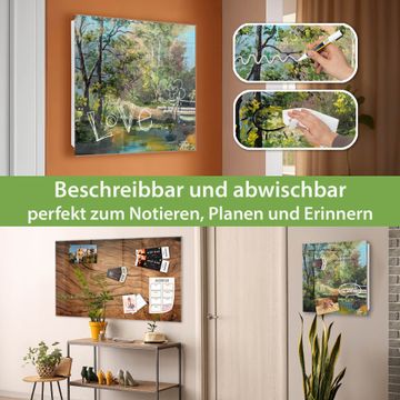Bringe Ordnung und Eleganz in deinen Eingangsbereich mit dem banjado Schlüsselkasten Motiv Motiv Kleine Brücke. Die moderne Schlüsselbox kombiniert funktionales Design mit hochwertiger Verarbeitung und wird so zu einem echten Hingucker in Flur, Büro oder Ferienwohnung. ✅ Stilvolle Schlüsselaufbewahrung mit Glasfront im Motiv Motiv Kleine Brücke Der Design-Schlüsselkasten Motiv Motiv Kleine Brücke bietet Platz für bis zu 50 Schlüssel, die auf 5 stabilen Reihen mit je 10 Haken übersichtlich verstaut werden. Mit seinen kompakten Maßen von 30 x 30 x 5 cm passt die Schlüsselbox perfekt auch in kleinere Räume. Der weiß lackierte Stahlkorpus mit rechts angeschlagenem Türscharnier harmoniert mit der Glasfront und fügt sich nahtlos in jedes Wohnambiente ein. Ob als Schlüsselorganizer für Zuhause oder als praktische Lösung für Büros, Praxen und Gewerbe, der banjado Schlüsselkasten sorgt für Ordnung und Übersicht. Dank der magnetischen, mit Kreidestiften beschreibbaren Glasfront kannst du Notizen anheften oder Termine direkt auf der Oberfläche festhalten. Die Schlüsselbox Motiv Motiv Kleine Brücke zur Wandmontage wird inklusive Befestigungsmaterial geliefert und ist schnell angebracht. So hast du deine Schlüssel jederzeit griffbereit und zugleich stilvoll verstaut. Mit diesem banjado Schlüsselkasten Motiv Motiv Kleine Brücke kombinierst du praktische Aufbewahrung mit stilvollem Wohndesign. Ob privat oder geschäftlich, die Schlüsselbox sorgt für mehr Ordnung, Übersicht und ein wohnliches Ambiente.Vorteile im Überblick