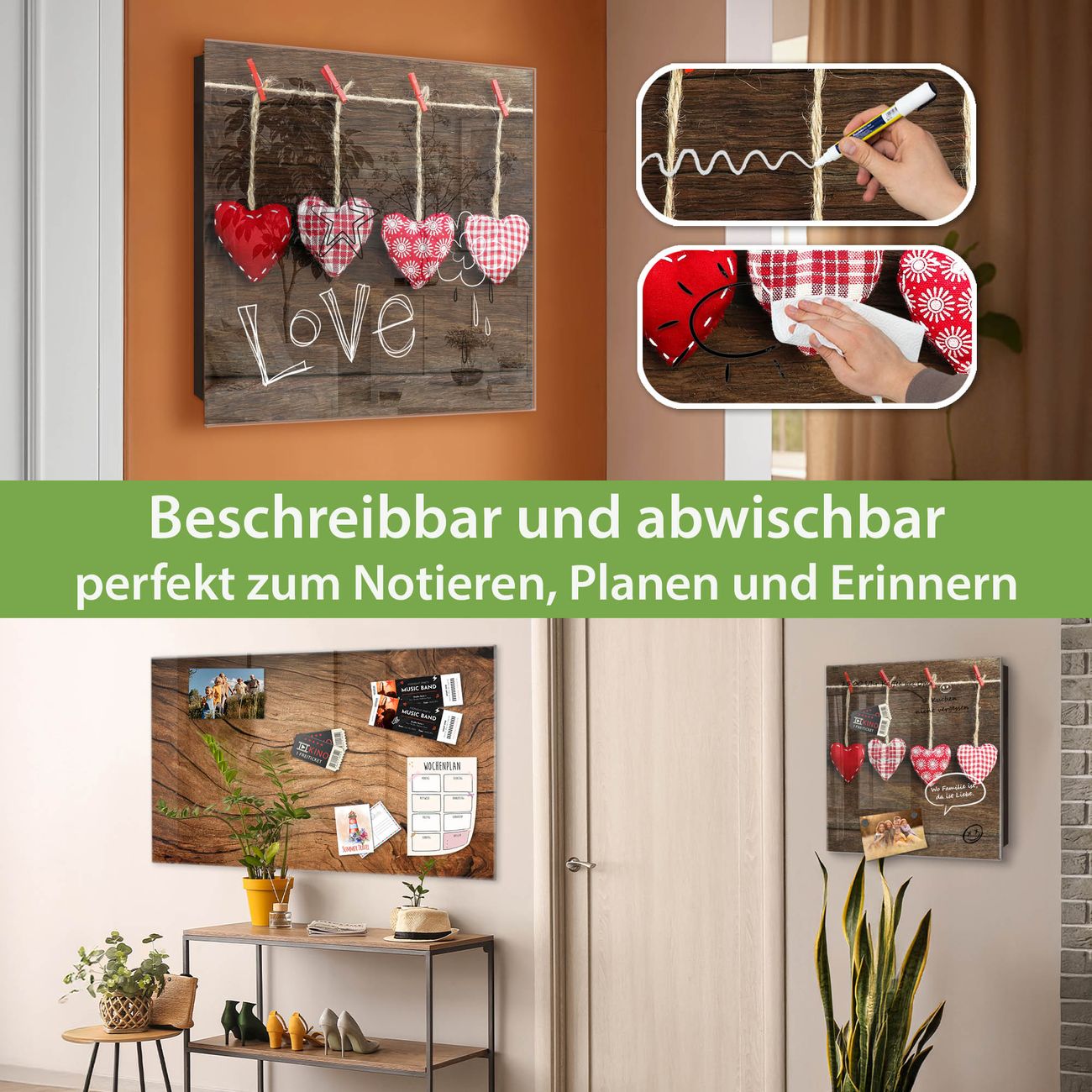 ✅ Magnetisch und mit Kreidestift beschreibbar, gehärtetes Glas, rechts angeschlagene TürOrdnung und Design in einem