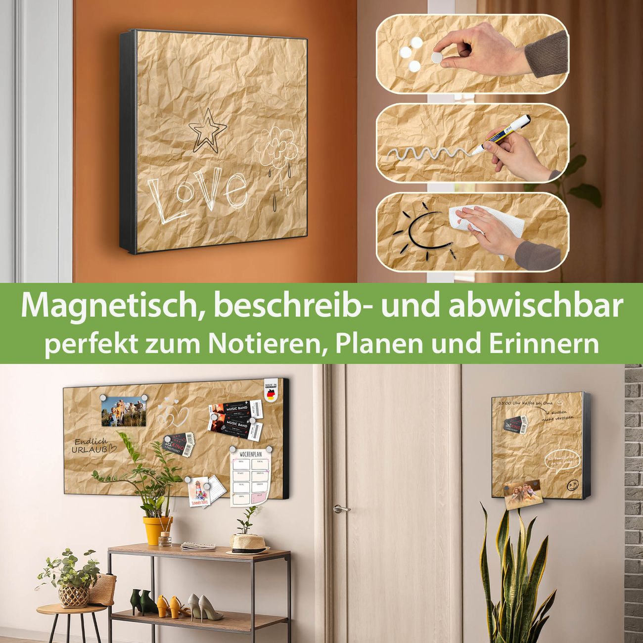 ✅ Magnetisch und mit Kreidestift beschreibbar, rechts angeschlagene TürOrdnung und Design in einem
