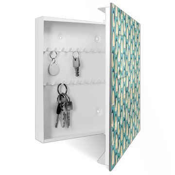 Bringe Ordnung und Eleganz in deinen Eingangsbereich mit dem banjado Schlüsselkasten Motiv Motiv Königspinguine. Die moderne Schlüsselbox kombiniert funktionales Design mit hochwertiger Verarbeitung und wird so zu einem echten Hingucker in Flur, Büro oder Ferienwohnung. ✅ Stilvolle Schlüsselaufbewahrung mit Glasfront im Motiv Motiv Königspinguine Der Design-Schlüsselkasten Motiv Motiv Königspinguine bietet Platz für bis zu 50 Schlüssel, die auf 5 stabilen Reihen mit je 10 Haken übersichtlich verstaut werden. Mit seinen kompakten Maßen von 30 x 30 x 5 cm passt die Schlüsselbox perfekt auch in kleinere Räume. Der weiß lackierte Stahlkorpus mit rechts angeschlagenem Türscharnier harmoniert mit der Glasfront und fügt sich nahtlos in jedes Wohnambiente ein. Ob als Schlüsselorganizer für Zuhause oder als praktische Lösung für Büros, Praxen und Gewerbe, der banjado Schlüsselkasten sorgt für Ordnung und Übersicht. Dank der magnetischen, mit Kreidestiften beschreibbaren Glasfront kannst du Notizen anheften oder Termine direkt auf der Oberfläche festhalten. Die Schlüsselbox Motiv Motiv Königspinguine zur Wandmontage wird inklusive Befestigungsmaterial geliefert und ist schnell angebracht. So hast du deine Schlüssel jederzeit griffbereit und zugleich stilvoll verstaut. Mit diesem banjado Schlüsselkasten Motiv Motiv Königspinguine kombinierst du praktische Aufbewahrung mit stilvollem Wohndesign. Ob privat oder geschäftlich, die Schlüsselbox sorgt für mehr Ordnung, Übersicht und ein wohnliches Ambiente.Vorteile im Überblick