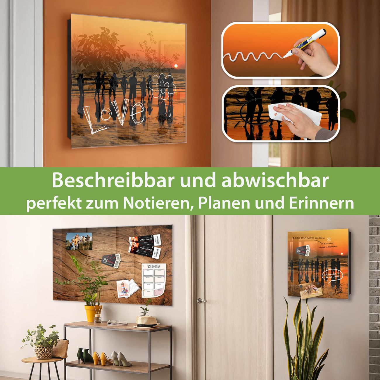 ✅ Magnetisch und mit Kreidestift beschreibbar, gehärtetes Glas, rechts angeschlagene TürOrdnung und Design in einem