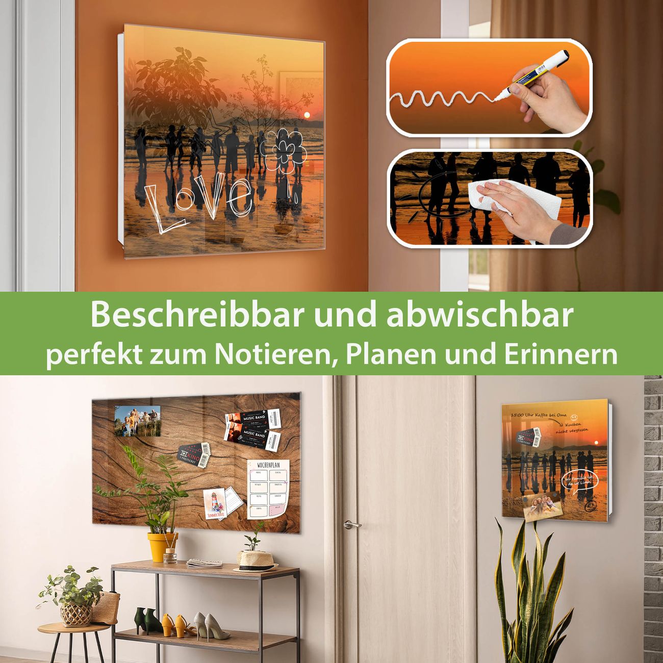✅ Magnetisch und mit Kreidestift beschreibbar, gehärtetes Glas, links angeschlagene TürOrdnung und Design in einem