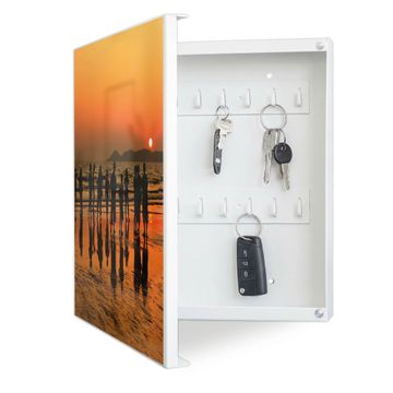 Bringe Ordnung und Eleganz in deinen Eingangsbereich mit dem banjado Schlüsselkasten Motiv Motiv Koh Samet Beach. Die moderne Schlüsselbox kombiniert funktionales Design mit hochwertiger Verarbeitung und wird so zu einem echten Hingucker in Flur, Büro oder Ferienwohnung. ✅ Stilvolle Schlüsselaufbewahrung mit Motiv Motiv Koh Samet Beach Der Design-Schlüsselkasten Motiv Motiv Koh Samet Beach bietet Platz für bis zu 32 Schlüssel, die auf 4 stabilen Reihen mit je 8 Haken übersichtlich verstaut werden. Mit seinen kompakten Maßen von 30 x 30 x 5 cm passt die Schlüsselbox perfekt auch in kleinere Räume. Der weiß lackierte Stahlkorpus mit links angeschlagenem Türscharnier harmoniert mit gedruckten Folie auf der Front und fügt sich nahtlos in jedes Wohnambiente ein. Ob als Schlüsselorganizer für Zuhause oder als praktische Lösung für Büros, Praxen und Gewerbe, der banjado Schlüsselkasten sorgt für Ordnung und Übersicht. Dank der magnetischen, mit Kreidestiften beschreibbaren Folie auf der Front kannst du Notizen anheften oder Termine direkt auf der Oberfläche festhalten. Die Schlüsselbox Motiv Motiv Koh Samet Beach zur Wandmontage wird inklusive Befestigungsmaterial geliefert und ist schnell angebracht. So hast du deine Schlüssel jederzeit griffbereit und zugleich stilvoll verstaut. Mit diesem banjado Schlüsselkasten Motiv Motiv Koh Samet Beach kombinierst du praktische Aufbewahrung mit stilvollem Wohndesign. Ob privat oder geschäftlich, die Schlüsselbox sorgt für mehr Ordnung, Übersicht und ein wohnliches Ambiente.Vorteile im Überblick