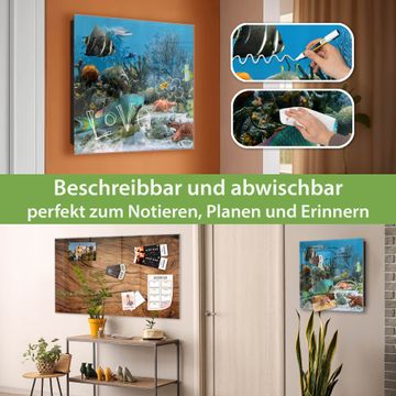 Bringe Ordnung und Eleganz in deinen Eingangsbereich mit dem banjado Schlüsselkasten Motiv Motiv Korallenriff 1. Die moderne Schlüsselbox kombiniert funktionales Design mit hochwertiger Verarbeitung und wird so zu einem echten Hingucker in Flur, Büro oder Ferienwohnung. ✅ Stilvolle Schlüsselaufbewahrung mit Glasfront im Motiv Motiv Korallenriff 1 Der Design-Schlüsselkasten Motiv Motiv Korallenriff 1 bietet Platz für bis zu 50 Schlüssel, die auf 5 stabilen Reihen mit je 10 Haken übersichtlich verstaut werden. Mit seinen kompakten Maßen von 30 x 30 x 5 cm passt die Schlüsselbox perfekt auch in kleinere Räume. Der schwarz lackierte Stahlkorpus mit rechts angeschlagenem Türscharnier harmoniert mit der Glasfront und fügt sich nahtlos in jedes Wohnambiente ein. Ob als Schlüsselorganizer für Zuhause oder als praktische Lösung für Büros, Praxen und Gewerbe, der banjado Schlüsselkasten sorgt für Ordnung und Übersicht. Dank der magnetischen, mit Kreidestiften beschreibbaren Glasfront kannst du Notizen anheften oder Termine direkt auf der Oberfläche festhalten. Die Schlüsselbox Motiv Motiv Korallenriff 1 zur Wandmontage wird inklusive Befestigungsmaterial geliefert und ist schnell angebracht. So hast du deine Schlüssel jederzeit griffbereit und zugleich stilvoll verstaut. Mit diesem banjado Schlüsselkasten Motiv Motiv Korallenriff 1 kombinierst du praktische Aufbewahrung mit stilvollem Wohndesign. Ob privat oder geschäftlich, die Schlüsselbox sorgt für mehr Ordnung, Übersicht und ein wohnliches Ambiente.Vorteile im Überblick