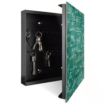 Bringe Ordnung und Eleganz in deinen Eingangsbereich mit dem banjado Schlüsselkasten Motiv Motiv Kreidetafel. Die moderne Schlüsselbox kombiniert funktionales Design mit hochwertiger Verarbeitung und wird so zu einem echten Hingucker in Flur, Büro oder Ferienwohnung. ✅ Stilvolle Schlüsselaufbewahrung mit Glasfront im Motiv Motiv Kreidetafel Der Design-Schlüsselkasten Motiv Motiv Kreidetafel bietet Platz für bis zu 50 Schlüssel, die auf 5 stabilen Reihen mit je 10 Haken übersichtlich verstaut werden. Mit seinen kompakten Maßen von 30 x 30 x 5 cm passt die Schlüsselbox perfekt auch in kleinere Räume. Der schwarz lackierte Stahlkorpus mit rechts angeschlagenem Türscharnier harmoniert mit der Glasfront und fügt sich nahtlos in jedes Wohnambiente ein. Ob als Schlüsselorganizer für Zuhause oder als praktische Lösung für Büros, Praxen und Gewerbe, der banjado Schlüsselkasten sorgt für Ordnung und Übersicht. Dank der magnetischen, mit Kreidestiften beschreibbaren Glasfront kannst du Notizen anheften oder Termine direkt auf der Oberfläche festhalten. Die Schlüsselbox Motiv Motiv Kreidetafel zur Wandmontage wird inklusive Befestigungsmaterial geliefert und ist schnell angebracht. So hast du deine Schlüssel jederzeit griffbereit und zugleich stilvoll verstaut. Mit diesem banjado Schlüsselkasten Motiv Motiv Kreidetafel kombinierst du praktische Aufbewahrung mit stilvollem Wohndesign. Ob privat oder geschäftlich, die Schlüsselbox sorgt für mehr Ordnung, Übersicht und ein wohnliches Ambiente.Vorteile im Überblick