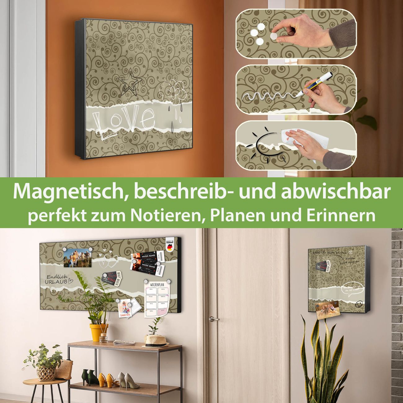 ✅ Magnetisch und mit Kreidestift beschreibbar, links angeschlagene TürOrdnung und Design in einem