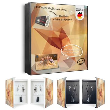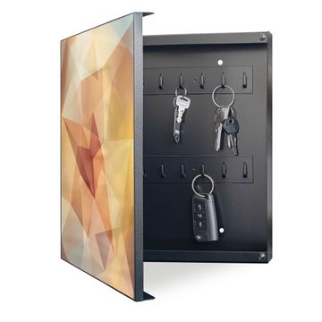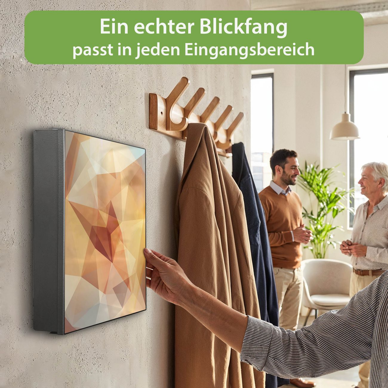 Bringe Ordnung und Eleganz in deinen Eingangsbereich mit dem banjado Schlüsselkasten Motiv Motiv Kristall. Die moderne Schlüsselbox kombiniert funktionales Design mit hochwertiger Verarbeitung und wird so zu einem echten Hingucker in Flur, Büro oder Ferienwohnung. ✅ Stilvolle Schlüsselaufbewahrung mit Motiv Motiv Kristall Der Design-Schlüsselkasten Motiv Motiv Kristall bietet Platz für bis zu 32 Schlüssel, die auf 4 stabilen Reihen mit je 8 Haken übersichtlich verstaut werden. Mit seinen kompakten Maßen von 30 x 30 x 5 cm passt die Schlüsselbox perfekt auch in kleinere Räume. Der schwarz lackierte Stahlkorpus mit links angeschlagenem Türscharnier harmoniert mit gedruckten Folie auf der Front und fügt sich nahtlos in jedes Wohnambiente ein. Ob als Schlüsselorganizer für Zuhause oder als praktische Lösung für Büros, Praxen und Gewerbe, der banjado Schlüsselkasten sorgt für Ordnung und Übersicht. Dank der magnetischen, mit Kreidestiften beschreibbaren Folie auf der Front kannst du Notizen anheften oder Termine direkt auf der Oberfläche festhalten. Die Schlüsselbox Motiv Motiv Kristall zur Wandmontage wird inklusive Befestigungsmaterial geliefert und ist schnell angebracht. So hast du deine Schlüssel jederzeit griffbereit und zugleich stilvoll verstaut. Mit diesem banjado Schlüsselkasten Motiv Motiv Kristall kombinierst du praktische Aufbewahrung mit stilvollem Wohndesign. Ob privat oder geschäftlich, die Schlüsselbox sorgt für mehr Ordnung, Übersicht und ein wohnliches Ambiente.Vorteile im Überblick