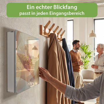 Bringe Ordnung und Eleganz in deinen Eingangsbereich mit dem banjado Schlüsselkasten Motiv Motiv Kristall. Die moderne Schlüsselbox kombiniert funktionales Design mit hochwertiger Verarbeitung und wird so zu einem echten Hingucker in Flur, Büro oder Ferienwohnung. ✅ Stilvolle Schlüsselaufbewahrung mit Glasfront im Motiv Motiv Kristall Der Design-Schlüsselkasten Motiv Motiv Kristall bietet Platz für bis zu 50 Schlüssel, die auf 5 stabilen Reihen mit je 10 Haken übersichtlich verstaut werden. Mit seinen kompakten Maßen von 30 x 30 x 5 cm passt die Schlüsselbox perfekt auch in kleinere Räume. Der weiß lackierte Stahlkorpus mit rechts angeschlagenem Türscharnier harmoniert mit der Glasfront und fügt sich nahtlos in jedes Wohnambiente ein. Ob als Schlüsselorganizer für Zuhause oder als praktische Lösung für Büros, Praxen und Gewerbe, der banjado Schlüsselkasten sorgt für Ordnung und Übersicht. Dank der magnetischen, mit Kreidestiften beschreibbaren Glasfront kannst du Notizen anheften oder Termine direkt auf der Oberfläche festhalten. Die Schlüsselbox Motiv Motiv Kristall zur Wandmontage wird inklusive Befestigungsmaterial geliefert und ist schnell angebracht. So hast du deine Schlüssel jederzeit griffbereit und zugleich stilvoll verstaut. Mit diesem banjado Schlüsselkasten Motiv Motiv Kristall kombinierst du praktische Aufbewahrung mit stilvollem Wohndesign. Ob privat oder geschäftlich, die Schlüsselbox sorgt für mehr Ordnung, Übersicht und ein wohnliches Ambiente.Vorteile im Überblick