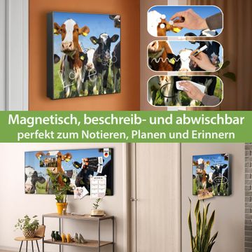 Bringe Ordnung und Eleganz in deinen Eingangsbereich mit dem banjado Schlüsselkasten Motiv Motiv Kühe. Die moderne Schlüsselbox kombiniert funktionales Design mit hochwertiger Verarbeitung und wird so zu einem echten Hingucker in Flur, Büro oder Ferienwohnung. ✅ Stilvolle Schlüsselaufbewahrung mit Motiv Motiv Kühe Der Design-Schlüsselkasten Motiv Motiv Kühe bietet Platz für bis zu 32 Schlüssel, die auf 4 stabilen Reihen mit je 8 Haken übersichtlich verstaut werden. Mit seinen kompakten Maßen von 30 x 30 x 5 cm passt die Schlüsselbox perfekt auch in kleinere Räume. Der schwarz lackierte Stahlkorpus mit rechts angeschlagenem Türscharnier harmoniert mit gedruckten Folie auf der Front und fügt sich nahtlos in jedes Wohnambiente ein. Ob als Schlüsselorganizer für Zuhause oder als praktische Lösung für Büros, Praxen und Gewerbe, der banjado Schlüsselkasten sorgt für Ordnung und Übersicht. Dank der magnetischen, mit Kreidestiften beschreibbaren Folie auf der Front kannst du Notizen anheften oder Termine direkt auf der Oberfläche festhalten. Die Schlüsselbox Motiv Motiv Kühe zur Wandmontage wird inklusive Befestigungsmaterial geliefert und ist schnell angebracht. So hast du deine Schlüssel jederzeit griffbereit und zugleich stilvoll verstaut. Mit diesem banjado Schlüsselkasten Motiv Motiv Kühe kombinierst du praktische Aufbewahrung mit stilvollem Wohndesign. Ob privat oder geschäftlich, die Schlüsselbox sorgt für mehr Ordnung, Übersicht und ein wohnliches Ambiente.Vorteile im Überblick