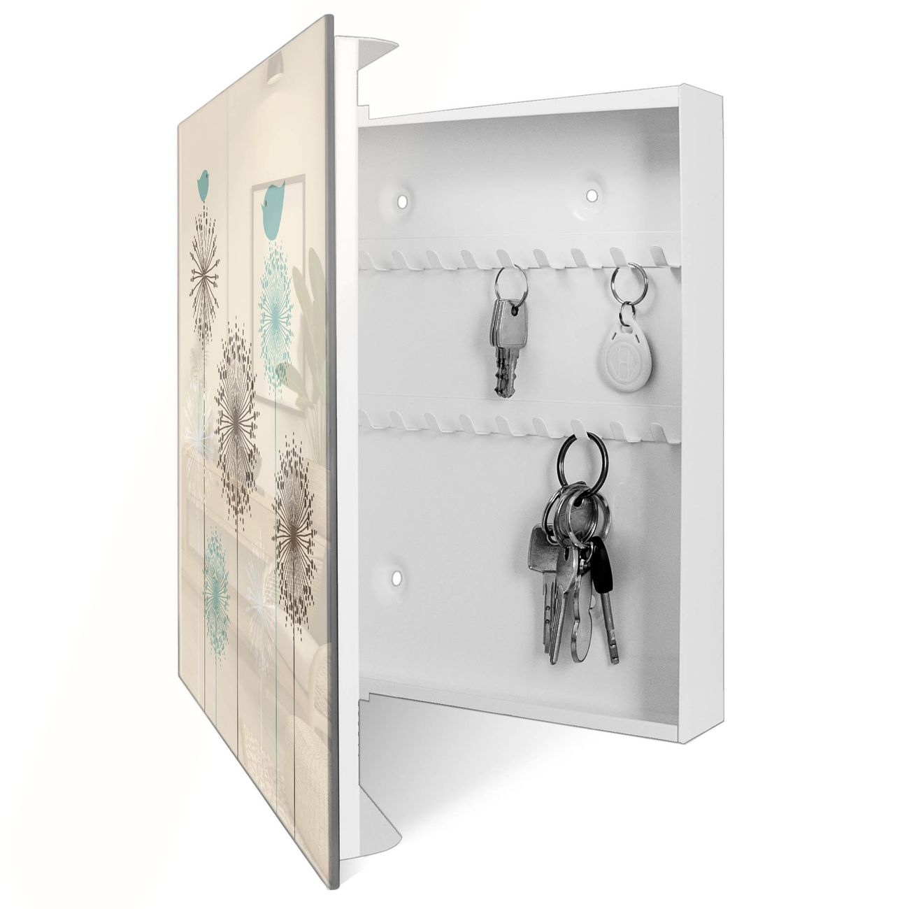 Bringe Ordnung und Eleganz in deinen Eingangsbereich mit dem banjado Schlüsselkasten Motiv Motiv Kugelfontänen. Die moderne Schlüsselbox kombiniert funktionales Design mit hochwertiger Verarbeitung und wird so zu einem echten Hingucker in Flur, Büro oder Ferienwohnung. ✅ Stilvolle Schlüsselaufbewahrung mit Glasfront im Motiv Motiv Kugelfontänen Der Design-Schlüsselkasten Motiv Motiv Kugelfontänen bietet Platz für bis zu 50 Schlüssel, die auf 5 stabilen Reihen mit je 10 Haken übersichtlich verstaut werden. Mit seinen kompakten Maßen von 30 x 30 x 5 cm passt die Schlüsselbox perfekt auch in kleinere Räume. Der weiß lackierte Stahlkorpus mit rechts angeschlagenem Türscharnier harmoniert mit der Glasfront und fügt sich nahtlos in jedes Wohnambiente ein. Ob als Schlüsselorganizer für Zuhause oder als praktische Lösung für Büros, Praxen und Gewerbe, der banjado Schlüsselkasten sorgt für Ordnung und Übersicht. Dank der magnetischen, mit Kreidestiften beschreibbaren Glasfront kannst du Notizen anheften oder Termine direkt auf der Oberfläche festhalten. Die Schlüsselbox Motiv Motiv Kugelfontänen zur Wandmontage wird inklusive Befestigungsmaterial geliefert und ist schnell angebracht. So hast du deine Schlüssel jederzeit griffbereit und zugleich stilvoll verstaut. Mit diesem banjado Schlüsselkasten Motiv Motiv Kugelfontänen kombinierst du praktische Aufbewahrung mit stilvollem Wohndesign. Ob privat oder geschäftlich, die Schlüsselbox sorgt für mehr Ordnung, Übersicht und ein wohnliches Ambiente.Vorteile im Überblick