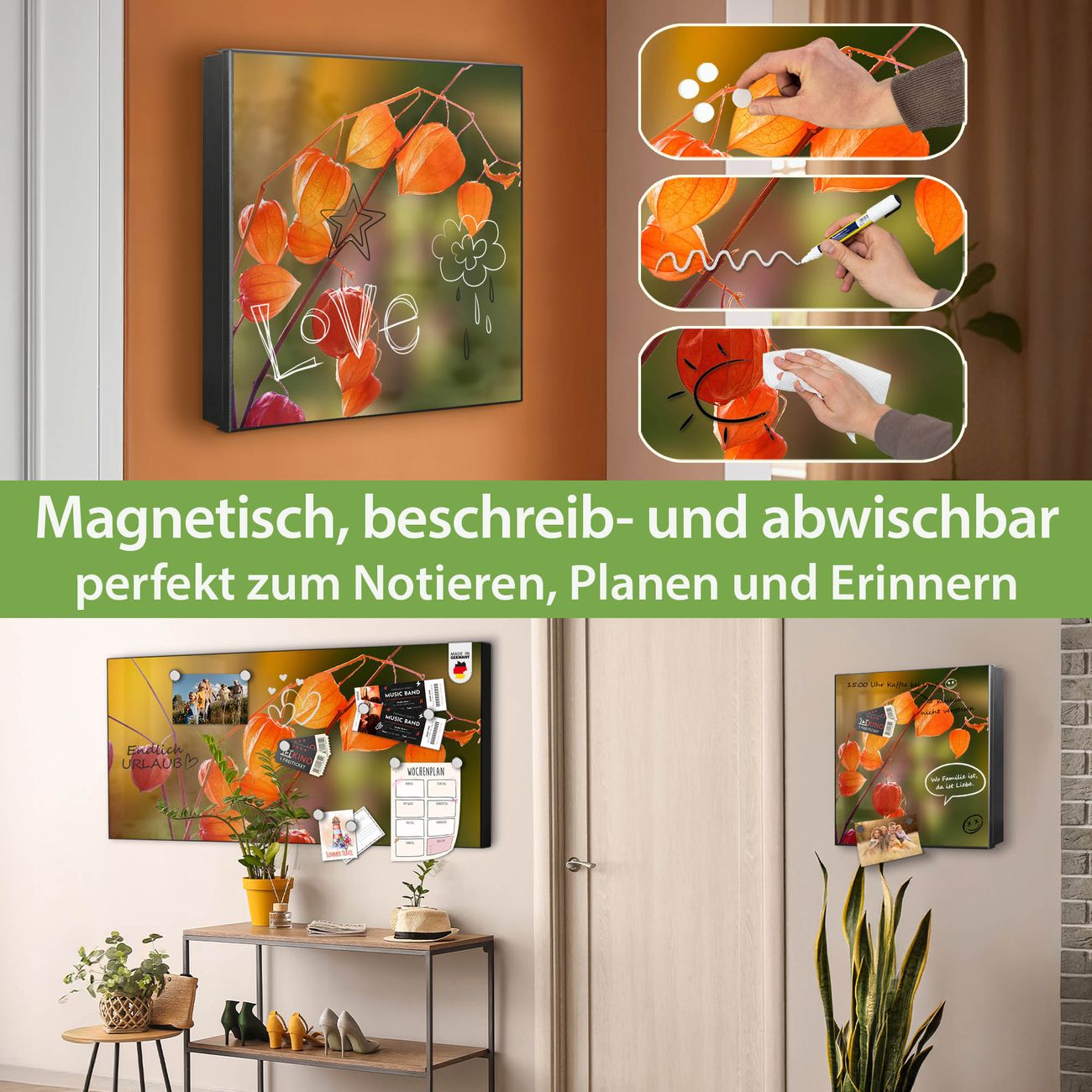 ✅ Magnetisch und mit Kreidestift beschreibbar, links angeschlagene TürOrdnung und Design in einem