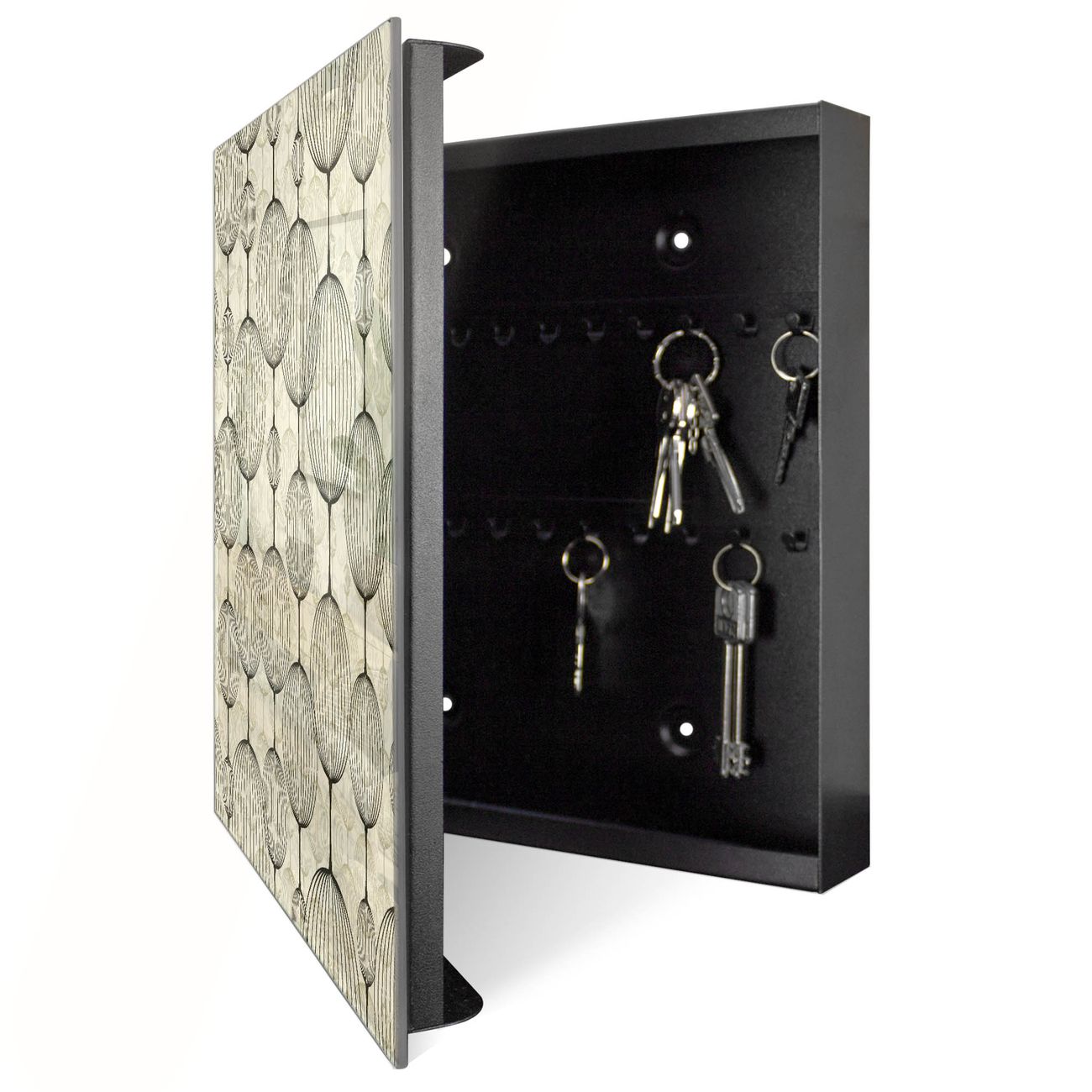 Bringe Ordnung und Eleganz in deinen Eingangsbereich mit dem banjado Schlüsselkasten Motiv Motiv Lampions. Die moderne Schlüsselbox kombiniert funktionales Design mit hochwertiger Verarbeitung und wird so zu einem echten Hingucker in Flur, Büro oder Ferienwohnung. ✅ Stilvolle Schlüsselaufbewahrung mit Glasfront im Motiv Motiv Lampions Der Design-Schlüsselkasten Motiv Motiv Lampions bietet Platz für bis zu 50 Schlüssel, die auf 5 stabilen Reihen mit je 10 Haken übersichtlich verstaut werden. Mit seinen kompakten Maßen von 30 x 30 x 5 cm passt die Schlüsselbox perfekt auch in kleinere Räume. Der schwarz lackierte Stahlkorpus mit rechts angeschlagenem Türscharnier harmoniert mit der Glasfront und fügt sich nahtlos in jedes Wohnambiente ein. Ob als Schlüsselorganizer für Zuhause oder als praktische Lösung für Büros, Praxen und Gewerbe, der banjado Schlüsselkasten sorgt für Ordnung und Übersicht. Dank der magnetischen, mit Kreidestiften beschreibbaren Glasfront kannst du Notizen anheften oder Termine direkt auf der Oberfläche festhalten. Die Schlüsselbox Motiv Motiv Lampions zur Wandmontage wird inklusive Befestigungsmaterial geliefert und ist schnell angebracht. So hast du deine Schlüssel jederzeit griffbereit und zugleich stilvoll verstaut. Mit diesem banjado Schlüsselkasten Motiv Motiv Lampions kombinierst du praktische Aufbewahrung mit stilvollem Wohndesign. Ob privat oder geschäftlich, die Schlüsselbox sorgt für mehr Ordnung, Übersicht und ein wohnliches Ambiente.Vorteile im Überblick