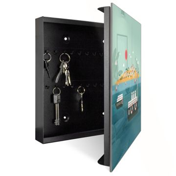 Bringe Ordnung und Eleganz in deinen Eingangsbereich mit dem banjado Schlüsselkasten Motiv Motiv Land in Sicht. Die moderne Schlüsselbox kombiniert funktionales Design mit hochwertiger Verarbeitung und wird so zu einem echten Hingucker in Flur, Büro oder Ferienwohnung. ✅ Stilvolle Schlüsselaufbewahrung mit Glasfront im Motiv Motiv Land in Sicht Der Design-Schlüsselkasten Motiv Motiv Land in Sicht bietet Platz für bis zu 50 Schlüssel, die auf 5 stabilen Reihen mit je 10 Haken übersichtlich verstaut werden. Mit seinen kompakten Maßen von 30 x 30 x 5 cm passt die Schlüsselbox perfekt auch in kleinere Räume. Der schwarz lackierte Stahlkorpus mit rechts angeschlagenem Türscharnier harmoniert mit der Glasfront und fügt sich nahtlos in jedes Wohnambiente ein. Ob als Schlüsselorganizer für Zuhause oder als praktische Lösung für Büros, Praxen und Gewerbe, der banjado Schlüsselkasten sorgt für Ordnung und Übersicht. Dank der magnetischen, mit Kreidestiften beschreibbaren Glasfront kannst du Notizen anheften oder Termine direkt auf der Oberfläche festhalten. Die Schlüsselbox Motiv Motiv Land in Sicht zur Wandmontage wird inklusive Befestigungsmaterial geliefert und ist schnell angebracht. So hast du deine Schlüssel jederzeit griffbereit und zugleich stilvoll verstaut. Mit diesem banjado Schlüsselkasten Motiv Motiv Land in Sicht kombinierst du praktische Aufbewahrung mit stilvollem Wohndesign. Ob privat oder geschäftlich, die Schlüsselbox sorgt für mehr Ordnung, Übersicht und ein wohnliches Ambiente.Vorteile im Überblick