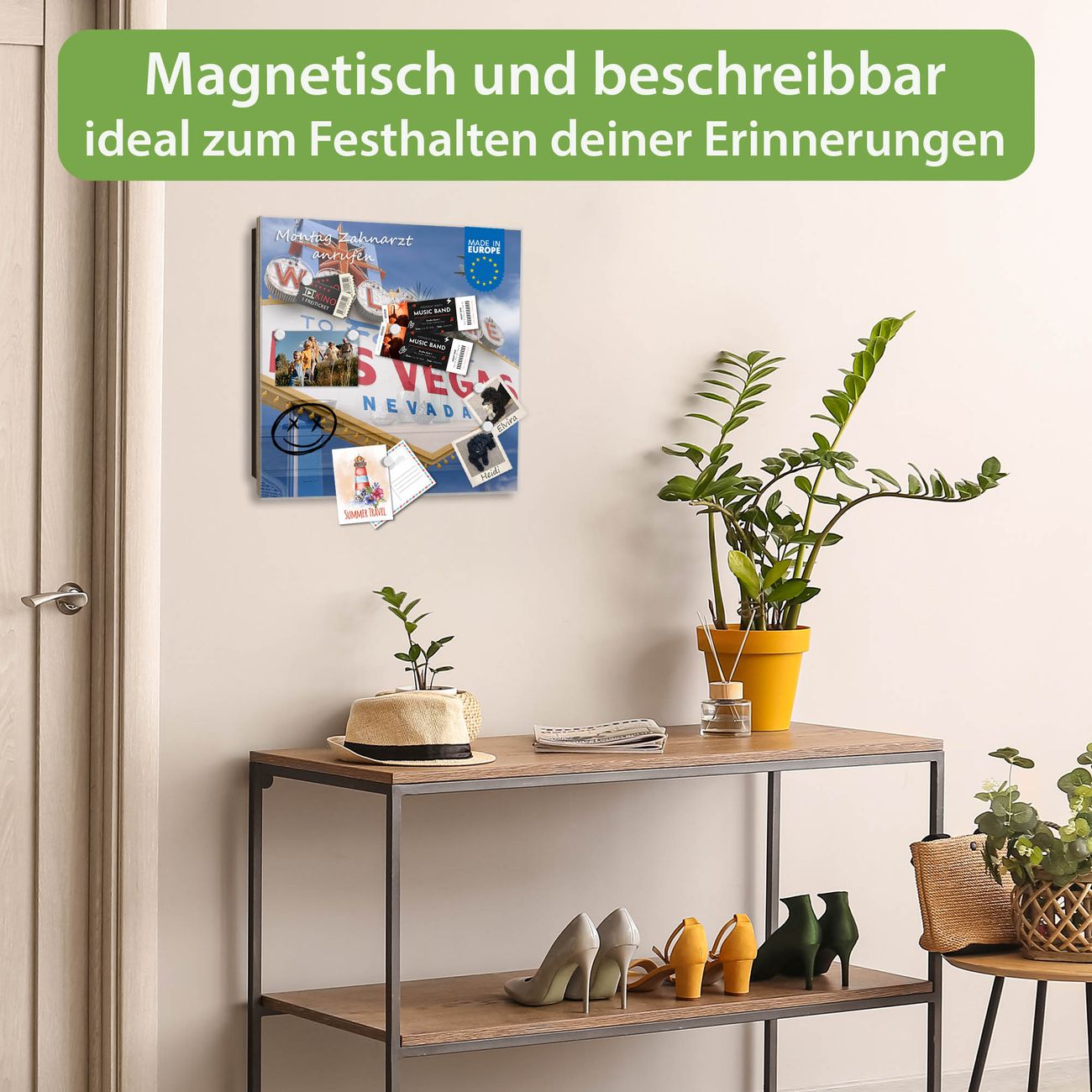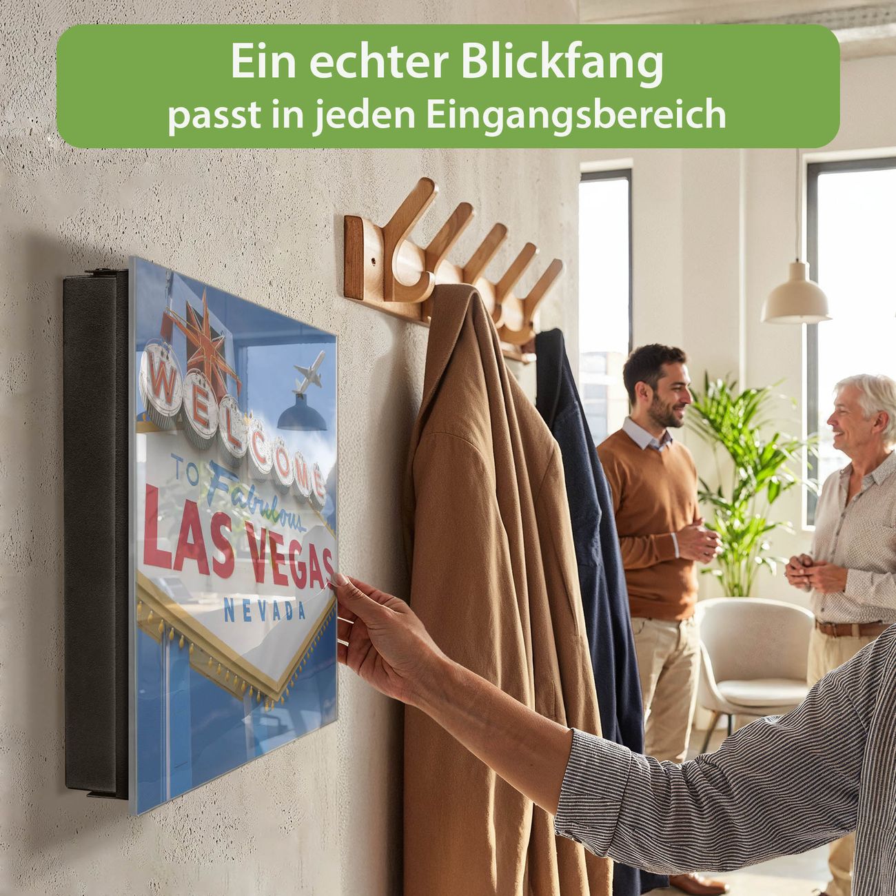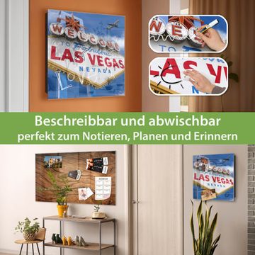 Bringe Ordnung und Eleganz in deinen Eingangsbereich mit dem banjado Schlüsselkasten Motiv Motiv Las Vegas. Die moderne Schlüsselbox kombiniert funktionales Design mit hochwertiger Verarbeitung und wird so zu einem echten Hingucker in Flur, Büro oder Ferienwohnung. ✅ Stilvolle Schlüsselaufbewahrung mit Glasfront im Motiv Motiv Las Vegas Der Design-Schlüsselkasten Motiv Motiv Las Vegas bietet Platz für bis zu 50 Schlüssel, die auf 5 stabilen Reihen mit je 10 Haken übersichtlich verstaut werden. Mit seinen kompakten Maßen von 30 x 30 x 5 cm passt die Schlüsselbox perfekt auch in kleinere Räume. Der schwarz lackierte Stahlkorpus mit rechts angeschlagenem Türscharnier harmoniert mit der Glasfront und fügt sich nahtlos in jedes Wohnambiente ein. Ob als Schlüsselorganizer für Zuhause oder als praktische Lösung für Büros, Praxen und Gewerbe, der banjado Schlüsselkasten sorgt für Ordnung und Übersicht. Dank der magnetischen, mit Kreidestiften beschreibbaren Glasfront kannst du Notizen anheften oder Termine direkt auf der Oberfläche festhalten. Die Schlüsselbox Motiv Motiv Las Vegas zur Wandmontage wird inklusive Befestigungsmaterial geliefert und ist schnell angebracht. So hast du deine Schlüssel jederzeit griffbereit und zugleich stilvoll verstaut. Mit diesem banjado Schlüsselkasten Motiv Motiv Las Vegas kombinierst du praktische Aufbewahrung mit stilvollem Wohndesign. Ob privat oder geschäftlich, die Schlüsselbox sorgt für mehr Ordnung, Übersicht und ein wohnliches Ambiente.Vorteile im Überblick