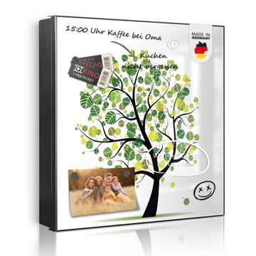 Bringe Ordnung und Eleganz in deinen Eingangsbereich mit dem banjado Schlüsselkasten Motiv Motiv Laubzauberbaum. Die moderne Schlüsselbox kombiniert funktionales Design mit hochwertiger Verarbeitung und wird so zu einem echten Hingucker in Flur, Büro oder Ferienwohnung. ✅ Stilvolle Schlüsselaufbewahrung mit Motiv Motiv Laubzauberbaum Der Design-Schlüsselkasten Motiv Motiv Laubzauberbaum bietet Platz für bis zu 32 Schlüssel, die auf 4 stabilen Reihen mit je 8 Haken übersichtlich verstaut werden. Mit seinen kompakten Maßen von 30 x 30 x 5 cm passt die Schlüsselbox perfekt auch in kleinere Räume. Der schwarz lackierte Stahlkorpus mit rechts angeschlagenem Türscharnier harmoniert mit gedruckten Folie auf der Front und fügt sich nahtlos in jedes Wohnambiente ein. Ob als Schlüsselorganizer für Zuhause oder als praktische Lösung für Büros, Praxen und Gewerbe, der banjado Schlüsselkasten sorgt für Ordnung und Übersicht. Dank der magnetischen, mit Kreidestiften beschreibbaren Folie auf der Front kannst du Notizen anheften oder Termine direkt auf der Oberfläche festhalten. Die Schlüsselbox Motiv Motiv Laubzauberbaum zur Wandmontage wird inklusive Befestigungsmaterial geliefert und ist schnell angebracht. So hast du deine Schlüssel jederzeit griffbereit und zugleich stilvoll verstaut. Mit diesem banjado Schlüsselkasten Motiv Motiv Laubzauberbaum kombinierst du praktische Aufbewahrung mit stilvollem Wohndesign. Ob privat oder geschäftlich, die Schlüsselbox sorgt für mehr Ordnung, Übersicht und ein wohnliches Ambiente.Vorteile im Überblick