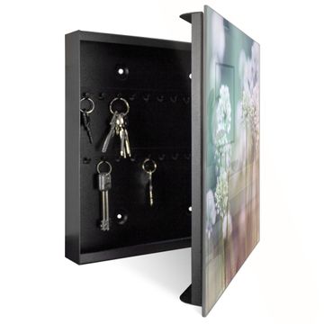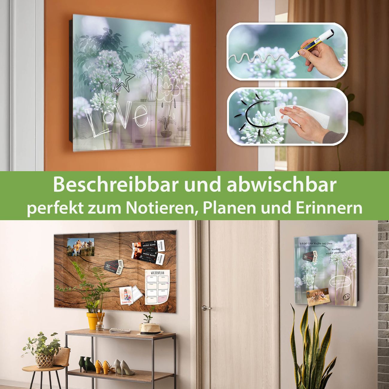 Bringe Ordnung und Eleganz in deinen Eingangsbereich mit dem banjado Schlüsselkasten Motiv Motiv Lauchblüte. Die moderne Schlüsselbox kombiniert funktionales Design mit hochwertiger Verarbeitung und wird so zu einem echten Hingucker in Flur, Büro oder Ferienwohnung. ✅ Stilvolle Schlüsselaufbewahrung mit Glasfront im Motiv Motiv Lauchblüte Der Design-Schlüsselkasten Motiv Motiv Lauchblüte bietet Platz für bis zu 50 Schlüssel, die auf 5 stabilen Reihen mit je 10 Haken übersichtlich verstaut werden. Mit seinen kompakten Maßen von 30 x 30 x 5 cm passt die Schlüsselbox perfekt auch in kleinere Räume. Der schwarz lackierte Stahlkorpus mit rechts angeschlagenem Türscharnier harmoniert mit der Glasfront und fügt sich nahtlos in jedes Wohnambiente ein. Ob als Schlüsselorganizer für Zuhause oder als praktische Lösung für Büros, Praxen und Gewerbe, der banjado Schlüsselkasten sorgt für Ordnung und Übersicht. Dank der magnetischen, mit Kreidestiften beschreibbaren Glasfront kannst du Notizen anheften oder Termine direkt auf der Oberfläche festhalten. Die Schlüsselbox Motiv Motiv Lauchblüte zur Wandmontage wird inklusive Befestigungsmaterial geliefert und ist schnell angebracht. So hast du deine Schlüssel jederzeit griffbereit und zugleich stilvoll verstaut. Mit diesem banjado Schlüsselkasten Motiv Motiv Lauchblüte kombinierst du praktische Aufbewahrung mit stilvollem Wohndesign. Ob privat oder geschäftlich, die Schlüsselbox sorgt für mehr Ordnung, Übersicht und ein wohnliches Ambiente.Vorteile im Überblick