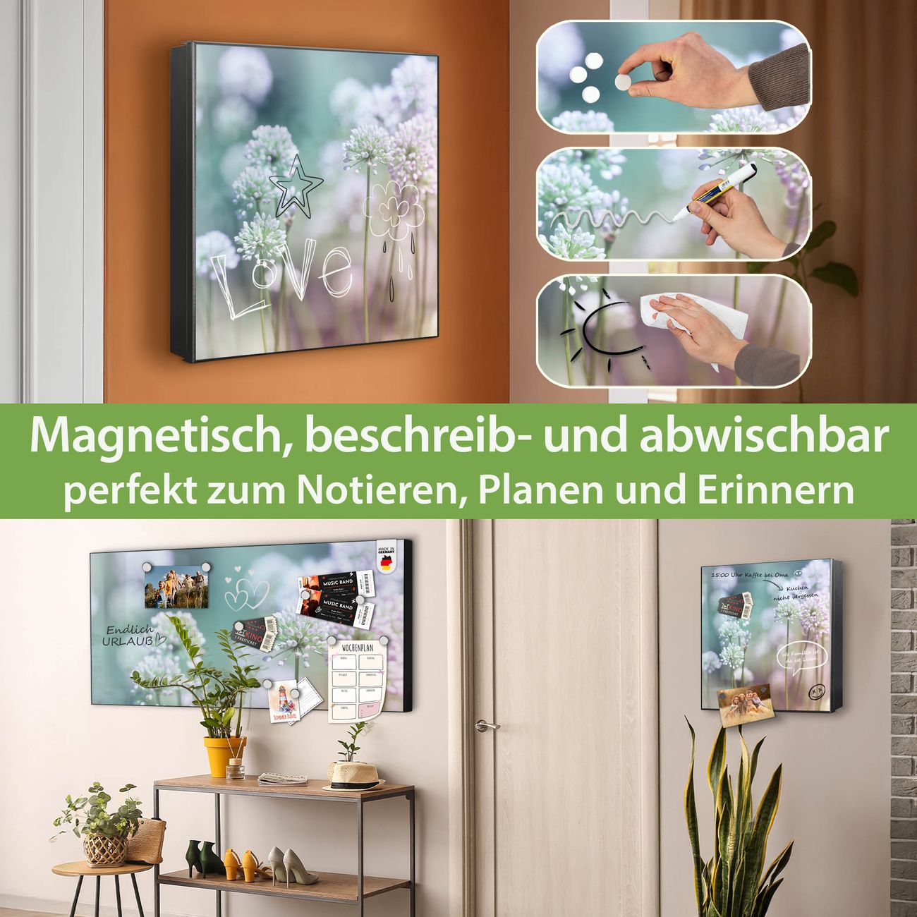 ✅ Magnetisch und mit Kreidestift beschreibbar, links angeschlagene TürOrdnung und Design in einem
