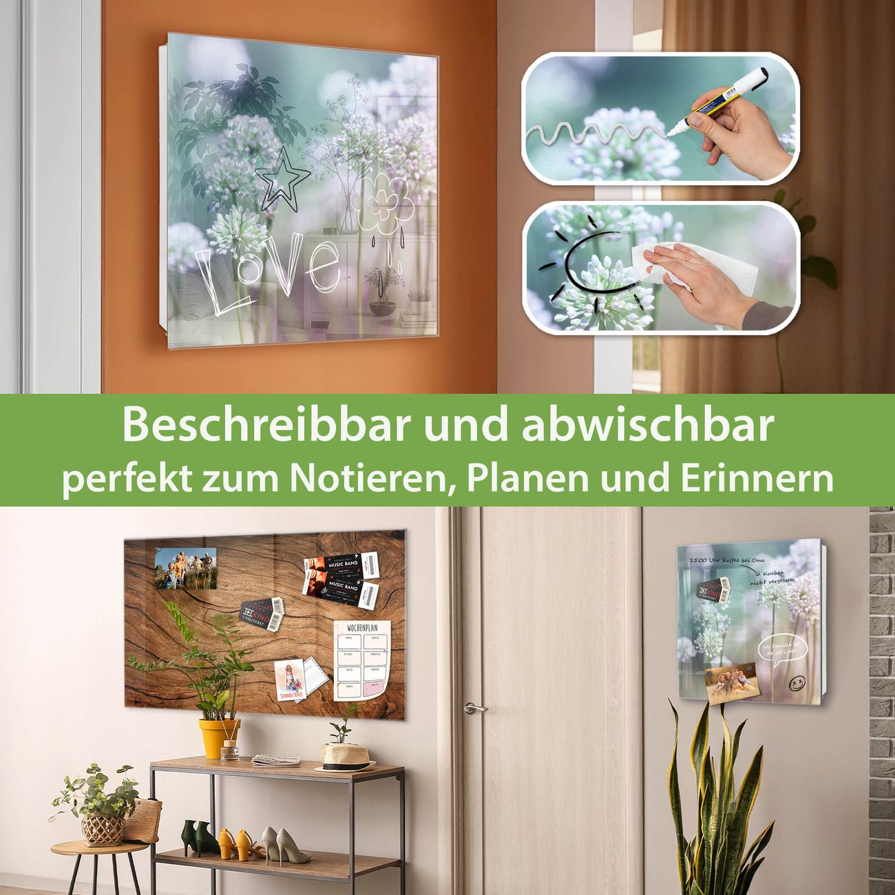 ✅ Magnetisch und mit Kreidestift beschreibbar, gehärtetes Glas, links angeschlagene TürOrdnung und Design in einem