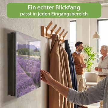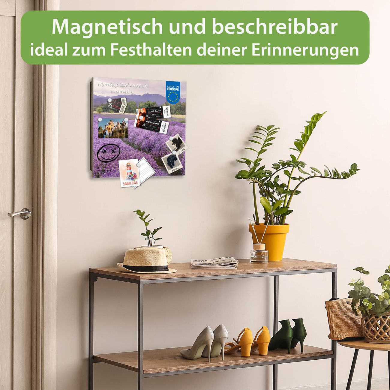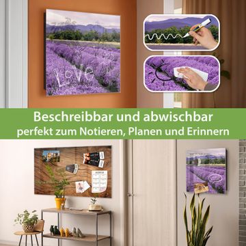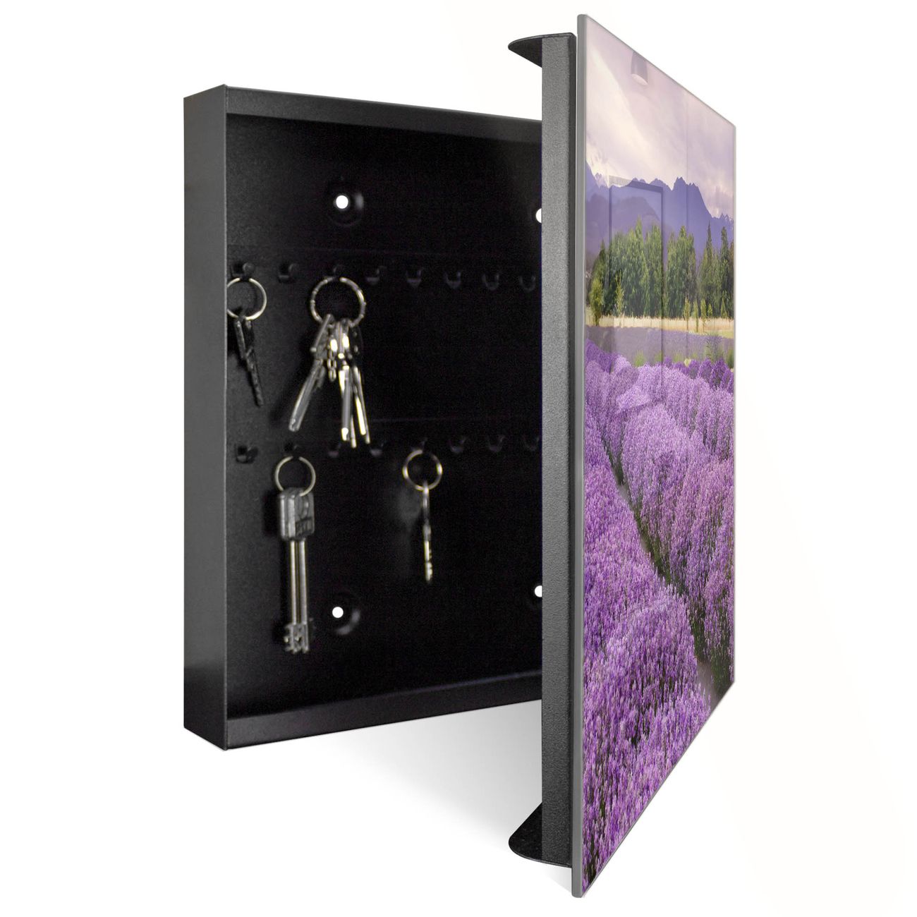 Bringe Ordnung und Eleganz in deinen Eingangsbereich mit dem banjado Schlüsselkasten Motiv Motiv Lavendel 1. Die moderne Schlüsselbox kombiniert funktionales Design mit hochwertiger Verarbeitung und wird so zu einem echten Hingucker in Flur, Büro oder Ferienwohnung. ✅ Stilvolle Schlüsselaufbewahrung mit Glasfront im Motiv Motiv Lavendel 1 Der Design-Schlüsselkasten Motiv Motiv Lavendel 1 bietet Platz für bis zu 50 Schlüssel, die auf 5 stabilen Reihen mit je 10 Haken übersichtlich verstaut werden. Mit seinen kompakten Maßen von 30 x 30 x 5 cm passt die Schlüsselbox perfekt auch in kleinere Räume. Der schwarz lackierte Stahlkorpus mit rechts angeschlagenem Türscharnier harmoniert mit der Glasfront und fügt sich nahtlos in jedes Wohnambiente ein. Ob als Schlüsselorganizer für Zuhause oder als praktische Lösung für Büros, Praxen und Gewerbe, der banjado Schlüsselkasten sorgt für Ordnung und Übersicht. Dank der magnetischen, mit Kreidestiften beschreibbaren Glasfront kannst du Notizen anheften oder Termine direkt auf der Oberfläche festhalten. Die Schlüsselbox Motiv Motiv Lavendel 1 zur Wandmontage wird inklusive Befestigungsmaterial geliefert und ist schnell angebracht. So hast du deine Schlüssel jederzeit griffbereit und zugleich stilvoll verstaut. Mit diesem banjado Schlüsselkasten Motiv Motiv Lavendel 1 kombinierst du praktische Aufbewahrung mit stilvollem Wohndesign. Ob privat oder geschäftlich, die Schlüsselbox sorgt für mehr Ordnung, Übersicht und ein wohnliches Ambiente.Vorteile im Überblick
