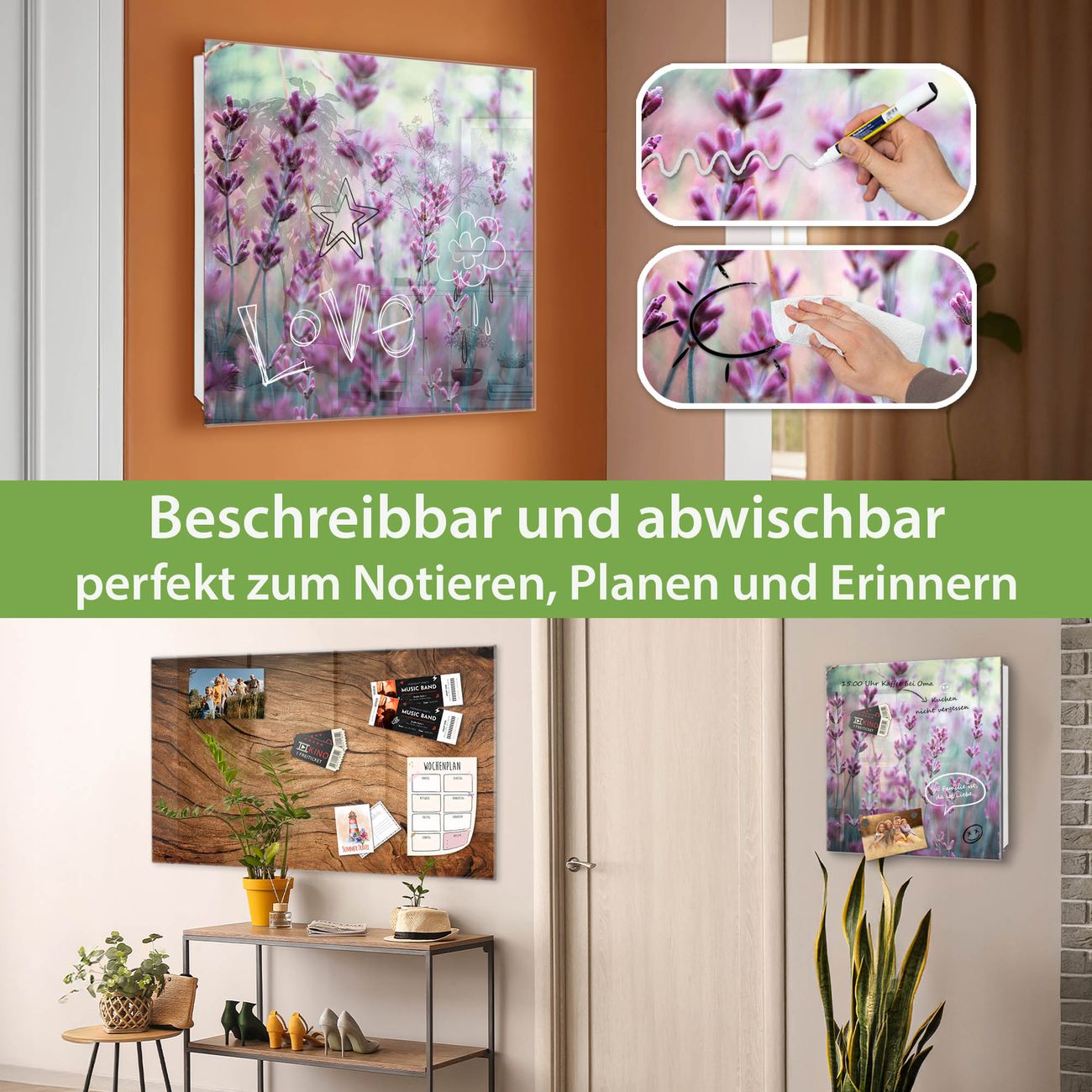 ✅ Magnetisch und mit Kreidestift beschreibbar, gehärtetes Glas, links angeschlagene TürOrdnung und Design in einem