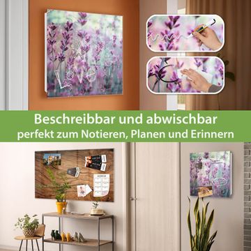 Bringe Ordnung und Eleganz in deinen Eingangsbereich mit dem banjado Schlüsselkasten Motiv Motiv Lavendel 2. Die moderne Schlüsselbox kombiniert funktionales Design mit hochwertiger Verarbeitung und wird so zu einem echten Hingucker in Flur, Büro oder Ferienwohnung. ✅ Stilvolle Schlüsselaufbewahrung mit Glasfront im Motiv Motiv Lavendel 2 Der Design-Schlüsselkasten Motiv Motiv Lavendel 2 bietet Platz für bis zu 50 Schlüssel, die auf 5 stabilen Reihen mit je 10 Haken übersichtlich verstaut werden. Mit seinen kompakten Maßen von 30 x 30 x 5 cm passt die Schlüsselbox perfekt auch in kleinere Räume. Der weiß lackierte Stahlkorpus mit rechts angeschlagenem Türscharnier harmoniert mit der Glasfront und fügt sich nahtlos in jedes Wohnambiente ein. Ob als Schlüsselorganizer für Zuhause oder als praktische Lösung für Büros, Praxen und Gewerbe, der banjado Schlüsselkasten sorgt für Ordnung und Übersicht. Dank der magnetischen, mit Kreidestiften beschreibbaren Glasfront kannst du Notizen anheften oder Termine direkt auf der Oberfläche festhalten. Die Schlüsselbox Motiv Motiv Lavendel 2 zur Wandmontage wird inklusive Befestigungsmaterial geliefert und ist schnell angebracht. So hast du deine Schlüssel jederzeit griffbereit und zugleich stilvoll verstaut. Mit diesem banjado Schlüsselkasten Motiv Motiv Lavendel 2 kombinierst du praktische Aufbewahrung mit stilvollem Wohndesign. Ob privat oder geschäftlich, die Schlüsselbox sorgt für mehr Ordnung, Übersicht und ein wohnliches Ambiente.Vorteile im Überblick