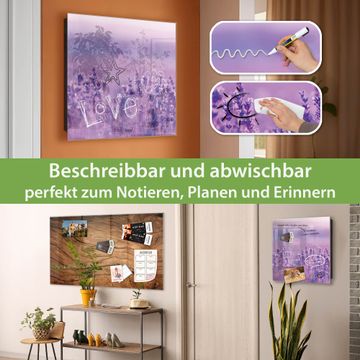 Bringe Ordnung und Eleganz in deinen Eingangsbereich mit dem banjado Schlüsselkasten Motiv Motiv Lavendelmeer. Die moderne Schlüsselbox kombiniert funktionales Design mit hochwertiger Verarbeitung und wird so zu einem echten Hingucker in Flur, Büro oder Ferienwohnung. ✅ Stilvolle Schlüsselaufbewahrung mit Glasfront im Motiv Motiv Lavendelmeer Der Design-Schlüsselkasten Motiv Motiv Lavendelmeer bietet Platz für bis zu 50 Schlüssel, die auf 5 stabilen Reihen mit je 10 Haken übersichtlich verstaut werden. Mit seinen kompakten Maßen von 30 x 30 x 5 cm passt die Schlüsselbox perfekt auch in kleinere Räume. Der schwarz lackierte Stahlkorpus mit rechts angeschlagenem Türscharnier harmoniert mit der Glasfront und fügt sich nahtlos in jedes Wohnambiente ein. Ob als Schlüsselorganizer für Zuhause oder als praktische Lösung für Büros, Praxen und Gewerbe, der banjado Schlüsselkasten sorgt für Ordnung und Übersicht. Dank der magnetischen, mit Kreidestiften beschreibbaren Glasfront kannst du Notizen anheften oder Termine direkt auf der Oberfläche festhalten. Die Schlüsselbox Motiv Motiv Lavendelmeer zur Wandmontage wird inklusive Befestigungsmaterial geliefert und ist schnell angebracht. So hast du deine Schlüssel jederzeit griffbereit und zugleich stilvoll verstaut. Mit diesem banjado Schlüsselkasten Motiv Motiv Lavendelmeer kombinierst du praktische Aufbewahrung mit stilvollem Wohndesign. Ob privat oder geschäftlich, die Schlüsselbox sorgt für mehr Ordnung, Übersicht und ein wohnliches Ambiente.Vorteile im Überblick
