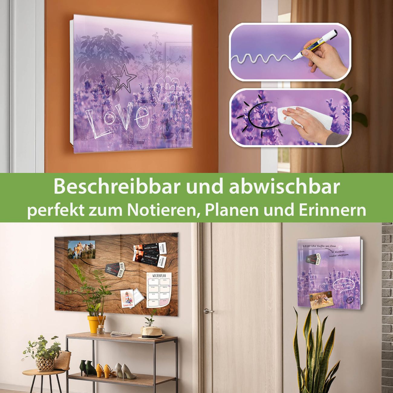 ✅ Magnetisch und mit Kreidestift beschreibbar, gehärtetes Glas, links angeschlagene TürOrdnung und Design in einem