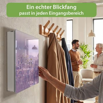 Bringe Ordnung und Eleganz in deinen Eingangsbereich mit dem banjado Schlüsselkasten Motiv Motiv Lavendelmeer. Die moderne Schlüsselbox kombiniert funktionales Design mit hochwertiger Verarbeitung und wird so zu einem echten Hingucker in Flur, Büro oder Ferienwohnung. ✅ Stilvolle Schlüsselaufbewahrung mit Glasfront im Motiv Motiv Lavendelmeer Der Design-Schlüsselkasten Motiv Motiv Lavendelmeer bietet Platz für bis zu 50 Schlüssel, die auf 5 stabilen Reihen mit je 10 Haken übersichtlich verstaut werden. Mit seinen kompakten Maßen von 30 x 30 x 5 cm passt die Schlüsselbox perfekt auch in kleinere Räume. Der weiß lackierte Stahlkorpus mit rechts angeschlagenem Türscharnier harmoniert mit der Glasfront und fügt sich nahtlos in jedes Wohnambiente ein. Ob als Schlüsselorganizer für Zuhause oder als praktische Lösung für Büros, Praxen und Gewerbe, der banjado Schlüsselkasten sorgt für Ordnung und Übersicht. Dank der magnetischen, mit Kreidestiften beschreibbaren Glasfront kannst du Notizen anheften oder Termine direkt auf der Oberfläche festhalten. Die Schlüsselbox Motiv Motiv Lavendelmeer zur Wandmontage wird inklusive Befestigungsmaterial geliefert und ist schnell angebracht. So hast du deine Schlüssel jederzeit griffbereit und zugleich stilvoll verstaut. Mit diesem banjado Schlüsselkasten Motiv Motiv Lavendelmeer kombinierst du praktische Aufbewahrung mit stilvollem Wohndesign. Ob privat oder geschäftlich, die Schlüsselbox sorgt für mehr Ordnung, Übersicht und ein wohnliches Ambiente.Vorteile im Überblick