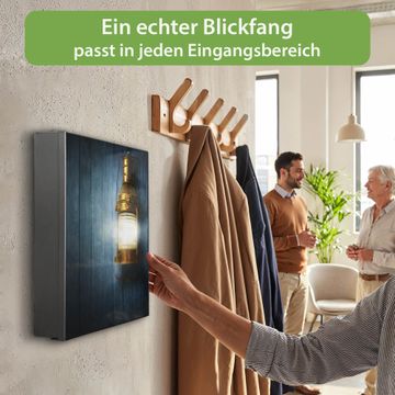 Bringe Ordnung und Eleganz in deinen Eingangsbereich mit dem banjado Schlüsselkasten Motiv Motiv Leuchte. Die moderne Schlüsselbox kombiniert funktionales Design mit hochwertiger Verarbeitung und wird so zu einem echten Hingucker in Flur, Büro oder Ferienwohnung. ✅ Stilvolle Schlüsselaufbewahrung mit Motiv Motiv Leuchte Der Design-Schlüsselkasten Motiv Motiv Leuchte bietet Platz für bis zu 32 Schlüssel, die auf 4 stabilen Reihen mit je 8 Haken übersichtlich verstaut werden. Mit seinen kompakten Maßen von 30 x 30 x 5 cm passt die Schlüsselbox perfekt auch in kleinere Räume. Der schwarz lackierte Stahlkorpus mit rechts angeschlagenem Türscharnier harmoniert mit gedruckten Folie auf der Front und fügt sich nahtlos in jedes Wohnambiente ein. Ob als Schlüsselorganizer für Zuhause oder als praktische Lösung für Büros, Praxen und Gewerbe, der banjado Schlüsselkasten sorgt für Ordnung und Übersicht. Dank der magnetischen, mit Kreidestiften beschreibbaren Folie auf der Front kannst du Notizen anheften oder Termine direkt auf der Oberfläche festhalten. Die Schlüsselbox Motiv Motiv Leuchte zur Wandmontage wird inklusive Befestigungsmaterial geliefert und ist schnell angebracht. So hast du deine Schlüssel jederzeit griffbereit und zugleich stilvoll verstaut. Mit diesem banjado Schlüsselkasten Motiv Motiv Leuchte kombinierst du praktische Aufbewahrung mit stilvollem Wohndesign. Ob privat oder geschäftlich, die Schlüsselbox sorgt für mehr Ordnung, Übersicht und ein wohnliches Ambiente.Vorteile im Überblick