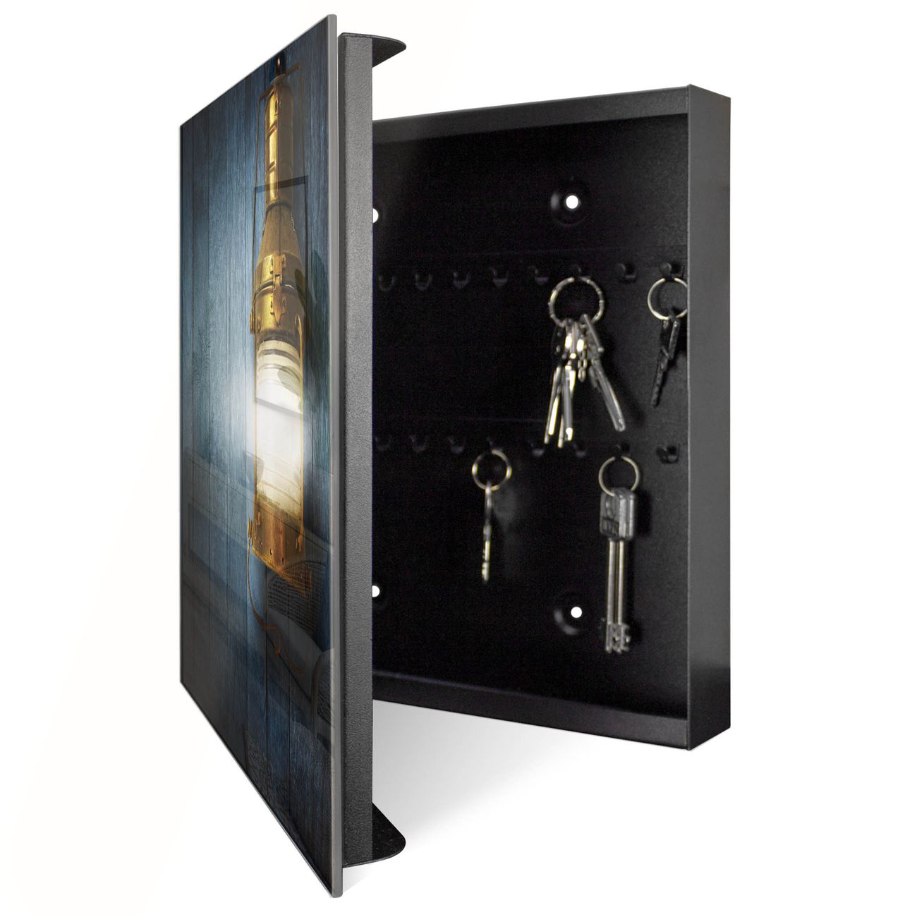 Bringe Ordnung und Eleganz in deinen Eingangsbereich mit dem banjado Schlüsselkasten Motiv Motiv Leuchte. Die moderne Schlüsselbox kombiniert funktionales Design mit hochwertiger Verarbeitung und wird so zu einem echten Hingucker in Flur, Büro oder Ferienwohnung. ✅ Stilvolle Schlüsselaufbewahrung mit Glasfront im Motiv Motiv Leuchte Der Design-Schlüsselkasten Motiv Motiv Leuchte bietet Platz für bis zu 50 Schlüssel, die auf 5 stabilen Reihen mit je 10 Haken übersichtlich verstaut werden. Mit seinen kompakten Maßen von 30 x 30 x 5 cm passt die Schlüsselbox perfekt auch in kleinere Räume. Der schwarz lackierte Stahlkorpus mit rechts angeschlagenem Türscharnier harmoniert mit der Glasfront und fügt sich nahtlos in jedes Wohnambiente ein. Ob als Schlüsselorganizer für Zuhause oder als praktische Lösung für Büros, Praxen und Gewerbe, der banjado Schlüsselkasten sorgt für Ordnung und Übersicht. Dank der magnetischen, mit Kreidestiften beschreibbaren Glasfront kannst du Notizen anheften oder Termine direkt auf der Oberfläche festhalten. Die Schlüsselbox Motiv Motiv Leuchte zur Wandmontage wird inklusive Befestigungsmaterial geliefert und ist schnell angebracht. So hast du deine Schlüssel jederzeit griffbereit und zugleich stilvoll verstaut. Mit diesem banjado Schlüsselkasten Motiv Motiv Leuchte kombinierst du praktische Aufbewahrung mit stilvollem Wohndesign. Ob privat oder geschäftlich, die Schlüsselbox sorgt für mehr Ordnung, Übersicht und ein wohnliches Ambiente.Vorteile im Überblick