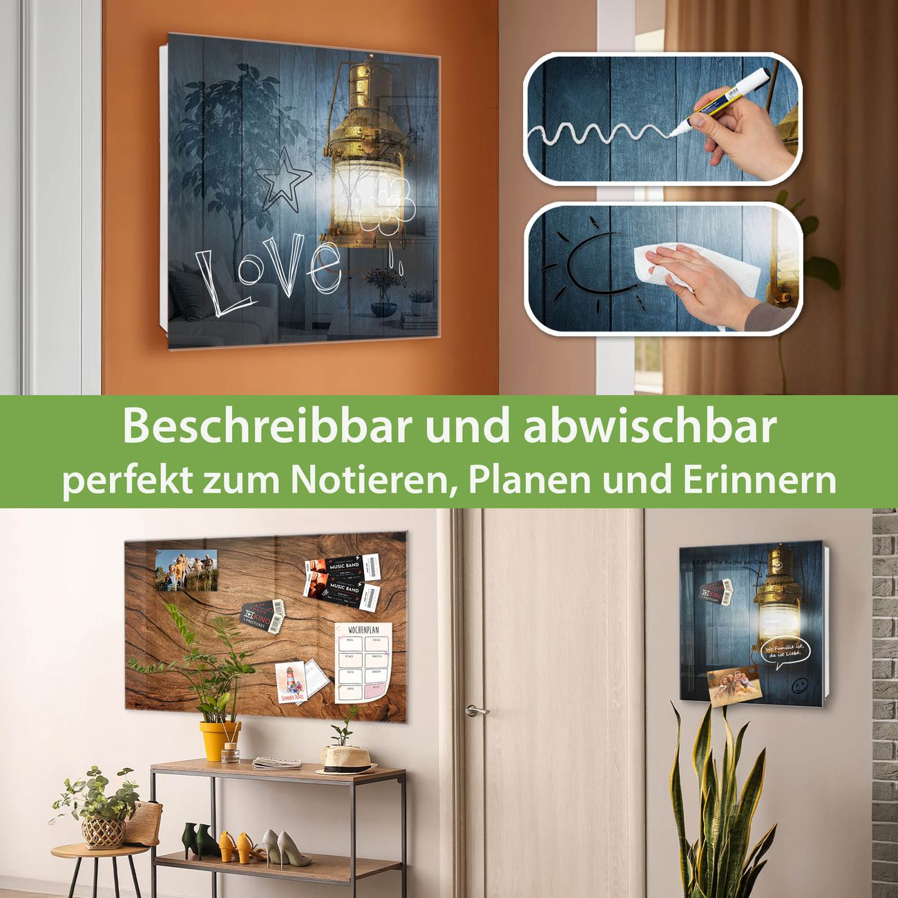 ✅ Magnetisch und mit Kreidestift beschreibbar, gehärtetes Glas, rechts angeschlagene TürOrdnung und Design in einem