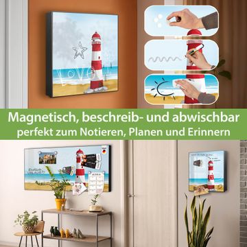Bringe Ordnung und Eleganz in deinen Eingangsbereich mit dem banjado Schlüsselkasten Motiv Motiv Leuchtturm Illustration. Die moderne Schlüsselbox kombiniert funktionales Design mit hochwertiger Verarbeitung und wird so zu einem echten Hingucker in Flur, Büro oder Ferienwohnung. ✅ Stilvolle Schlüsselaufbewahrung mit Motiv Motiv Leuchtturm Illustration Der Design-Schlüsselkasten Motiv Motiv Leuchtturm Illustration bietet Platz für bis zu 32 Schlüssel, die auf 4 stabilen Reihen mit je 8 Haken übersichtlich verstaut werden. Mit seinen kompakten Maßen von 30 x 30 x 5 cm passt die Schlüsselbox perfekt auch in kleinere Räume. Der schwarz lackierte Stahlkorpus mit rechts angeschlagenem Türscharnier harmoniert mit gedruckten Folie auf der Front und fügt sich nahtlos in jedes Wohnambiente ein. Ob als Schlüsselorganizer für Zuhause oder als praktische Lösung für Büros, Praxen und Gewerbe, der banjado Schlüsselkasten sorgt für Ordnung und Übersicht. Dank der magnetischen, mit Kreidestiften beschreibbaren Folie auf der Front kannst du Notizen anheften oder Termine direkt auf der Oberfläche festhalten. Die Schlüsselbox Motiv Motiv Leuchtturm Illustration zur Wandmontage wird inklusive Befestigungsmaterial geliefert und ist schnell angebracht. So hast du deine Schlüssel jederzeit griffbereit und zugleich stilvoll verstaut. Mit diesem banjado Schlüsselkasten Motiv Motiv Leuchtturm Illustration kombinierst du praktische Aufbewahrung mit stilvollem Wohndesign. Ob privat oder geschäftlich, die Schlüsselbox sorgt für mehr Ordnung, Übersicht und ein wohnliches Ambiente.Vorteile im Überblick