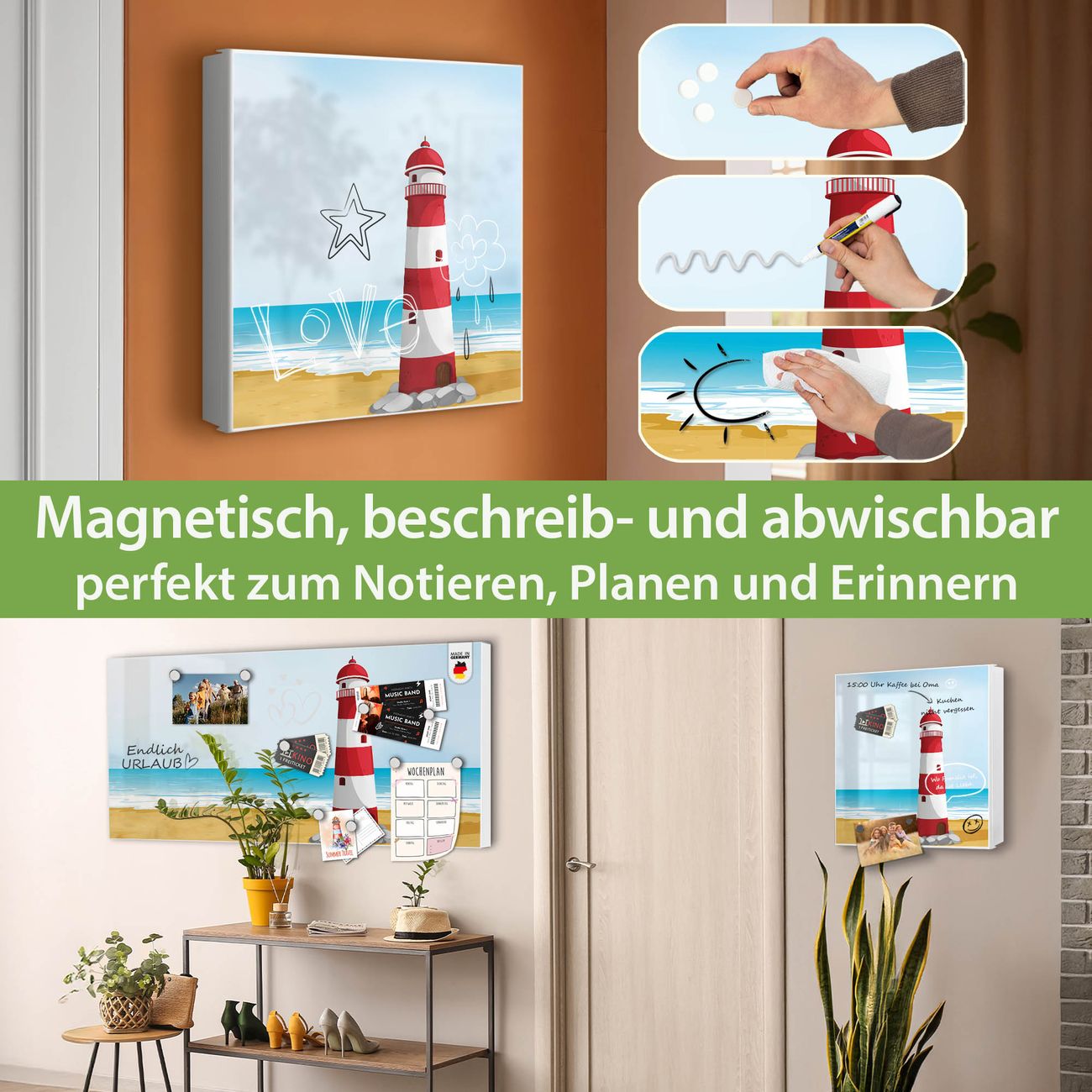 Bringe Ordnung und Eleganz in deinen Eingangsbereich mit dem banjado Schlüsselkasten Motiv Motiv Leuchtturm Illustration. Die moderne Schlüsselbox kombiniert funktionales Design mit hochwertiger Verarbeitung und wird so zu einem echten Hingucker in Flur, Büro oder Ferienwohnung. ✅ Stilvolle Schlüsselaufbewahrung mit Motiv Motiv Leuchtturm Illustration Der Design-Schlüsselkasten Motiv Motiv Leuchtturm Illustration bietet Platz für bis zu 32 Schlüssel, die auf 4 stabilen Reihen mit je 8 Haken übersichtlich verstaut werden. Mit seinen kompakten Maßen von 30 x 30 x 5 cm passt die Schlüsselbox perfekt auch in kleinere Räume. Der weiß lackierte Stahlkorpus mit rechts angeschlagenem Türscharnier harmoniert mit gedruckten Folie auf der Front und fügt sich nahtlos in jedes Wohnambiente ein. Ob als Schlüsselorganizer für Zuhause oder als praktische Lösung für Büros, Praxen und Gewerbe, der banjado Schlüsselkasten sorgt für Ordnung und Übersicht. Dank der magnetischen, mit Kreidestiften beschreibbaren Folie auf der Front kannst du Notizen anheften oder Termine direkt auf der Oberfläche festhalten. Die Schlüsselbox Motiv Motiv Leuchtturm Illustration zur Wandmontage wird inklusive Befestigungsmaterial geliefert und ist schnell angebracht. So hast du deine Schlüssel jederzeit griffbereit und zugleich stilvoll verstaut. Mit diesem banjado Schlüsselkasten Motiv Motiv Leuchtturm Illustration kombinierst du praktische Aufbewahrung mit stilvollem Wohndesign. Ob privat oder geschäftlich, die Schlüsselbox sorgt für mehr Ordnung, Übersicht und ein wohnliches Ambiente.Vorteile im Überblick