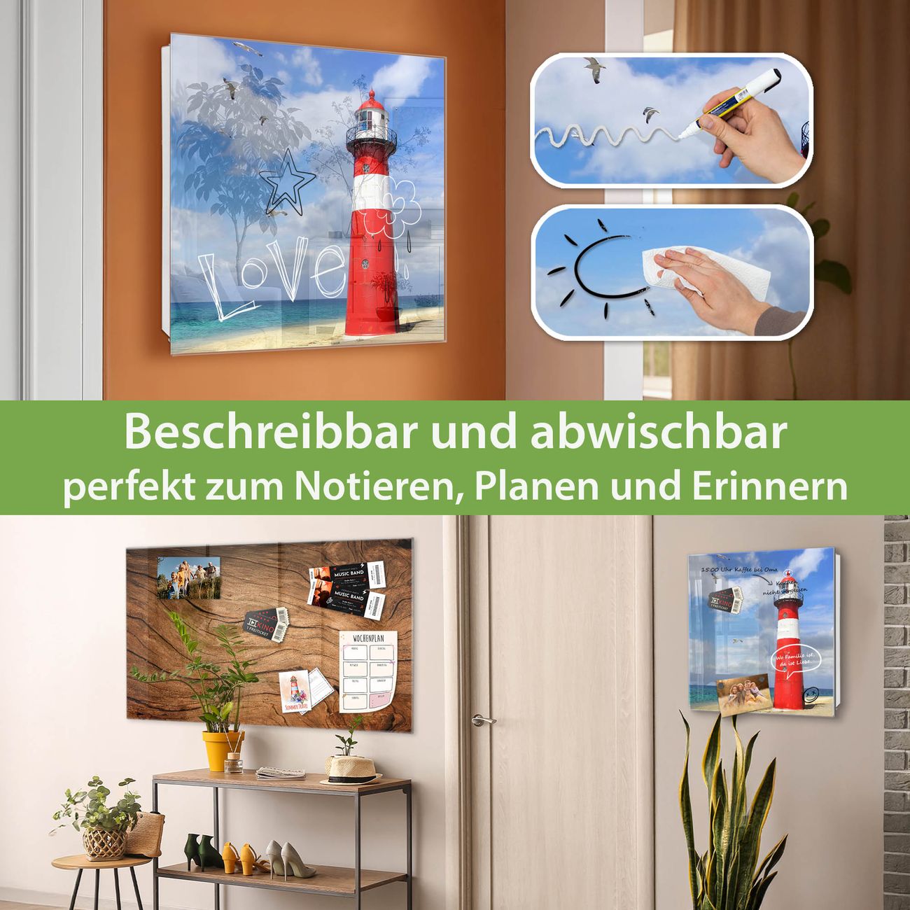 ✅ Magnetisch und mit Kreidestift beschreibbar, gehärtetes Glas, links angeschlagene TürOrdnung und Design in einem