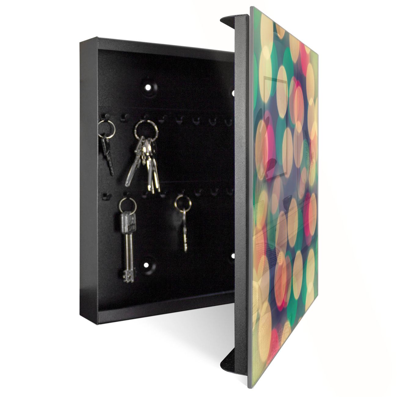 Schlüsselkasten Glas Motiv Lichtpunkte Weiß Grün Rot