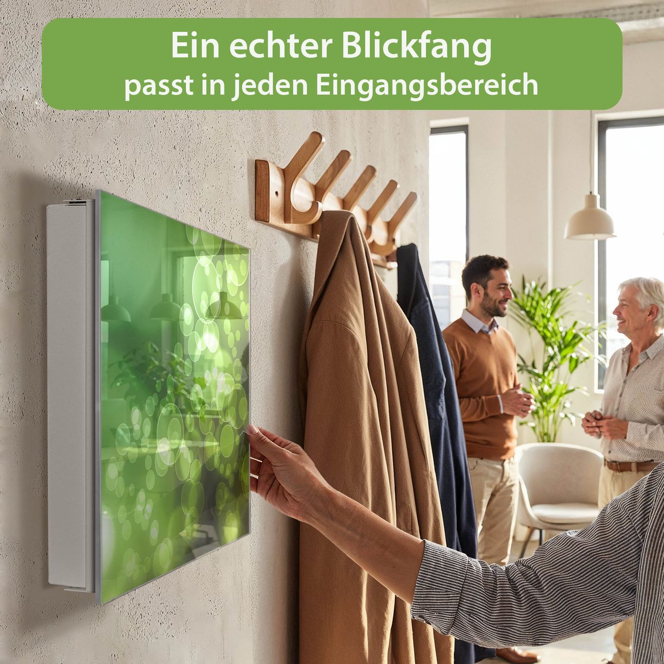 Bringe Ordnung und Eleganz in deinen Eingangsbereich mit dem banjado Schlüsselkasten Motiv Motiv Lichtspiel. Die moderne Schlüsselbox kombiniert funktionales Design mit hochwertiger Verarbeitung und wird so zu einem echten Hingucker in Flur, Büro oder Ferienwohnung. ✅ Stilvolle Schlüsselaufbewahrung mit Glasfront im Motiv Motiv Lichtspiel Der Design-Schlüsselkasten Motiv Motiv Lichtspiel bietet Platz für bis zu 50 Schlüssel, die auf 5 stabilen Reihen mit je 10 Haken übersichtlich verstaut werden. Mit seinen kompakten Maßen von 30 x 30 x 5 cm passt die Schlüsselbox perfekt auch in kleinere Räume. Der weiß lackierte Stahlkorpus mit rechts angeschlagenem Türscharnier harmoniert mit der Glasfront und fügt sich nahtlos in jedes Wohnambiente ein. Ob als Schlüsselorganizer für Zuhause oder als praktische Lösung für Büros, Praxen und Gewerbe, der banjado Schlüsselkasten sorgt für Ordnung und Übersicht. Dank der magnetischen, mit Kreidestiften beschreibbaren Glasfront kannst du Notizen anheften oder Termine direkt auf der Oberfläche festhalten. Die Schlüsselbox Motiv Motiv Lichtspiel zur Wandmontage wird inklusive Befestigungsmaterial geliefert und ist schnell angebracht. So hast du deine Schlüssel jederzeit griffbereit und zugleich stilvoll verstaut. Mit diesem banjado Schlüsselkasten Motiv Motiv Lichtspiel kombinierst du praktische Aufbewahrung mit stilvollem Wohndesign. Ob privat oder geschäftlich, die Schlüsselbox sorgt für mehr Ordnung, Übersicht und ein wohnliches Ambiente.Vorteile im Überblick