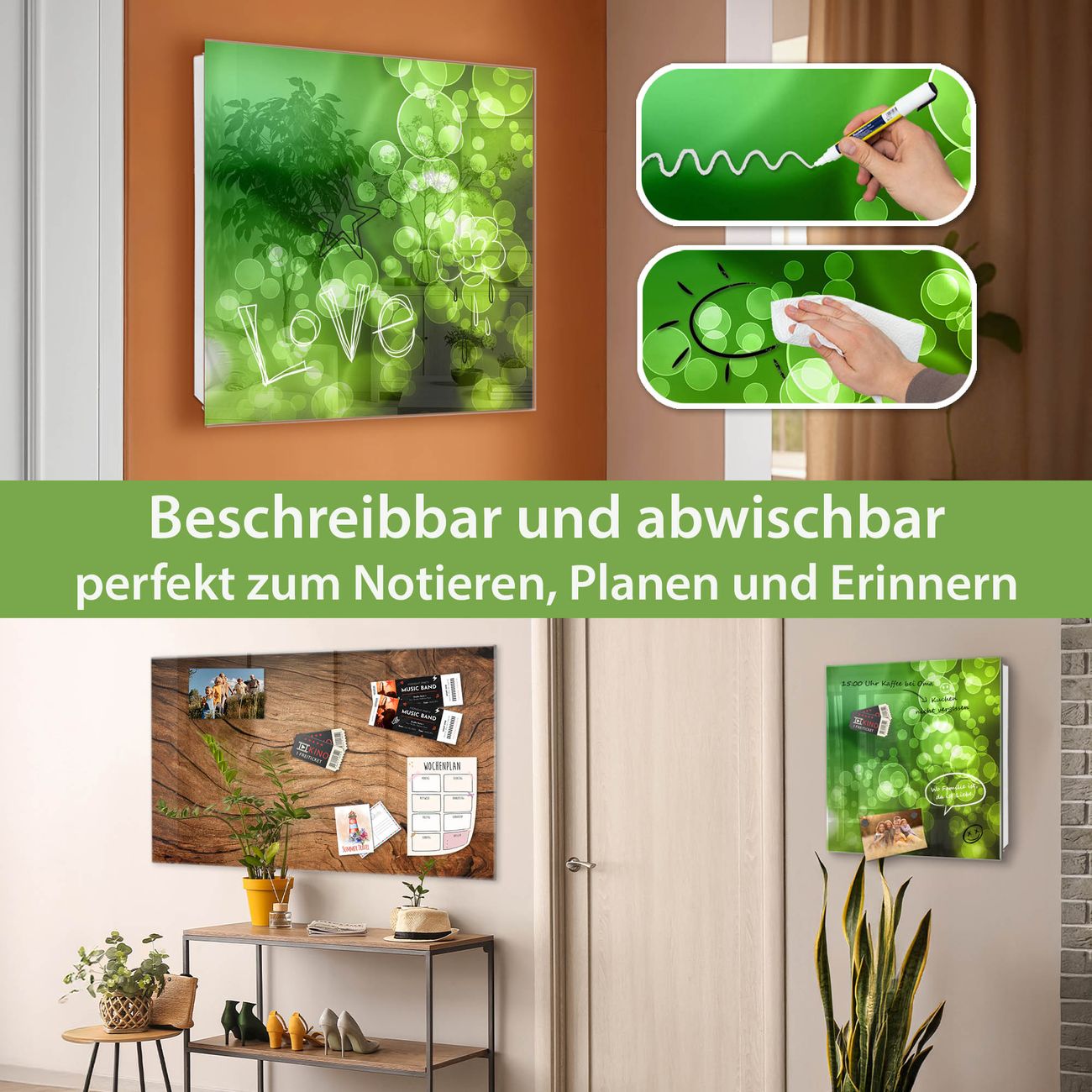 ✅ Magnetisch und mit Kreidestift beschreibbar, gehärtetes Glas, links angeschlagene TürOrdnung und Design in einem