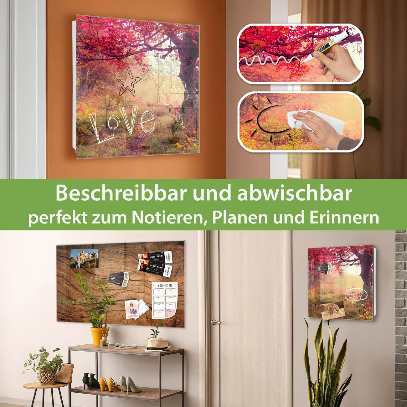 ✅ Magnetisch und mit Kreidestift beschreibbar, gehärtetes Glas, rechts angeschlagene TürOrdnung und Design in einem