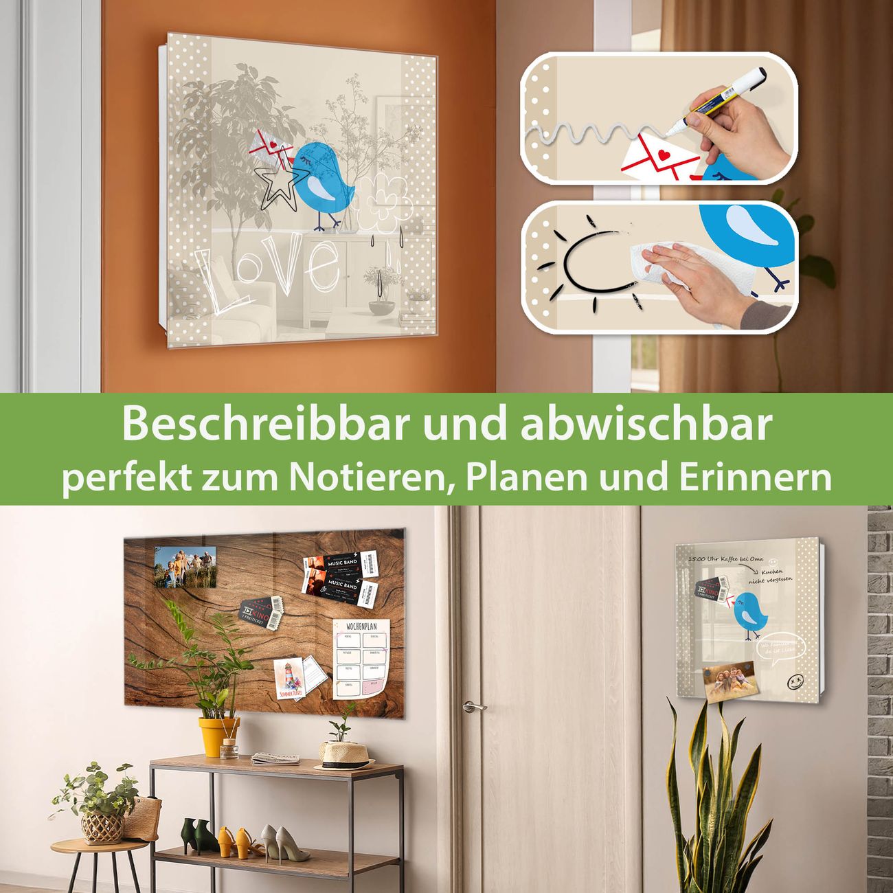 ✅ Magnetisch und mit Kreidestift beschreibbar, gehärtetes Glas, rechts angeschlagene TürOrdnung und Design in einem