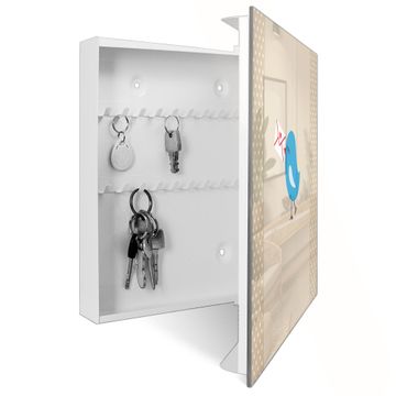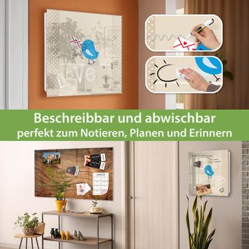 Bringe Ordnung und Eleganz in deinen Eingangsbereich mit dem banjado Schlüsselkasten Motiv Motiv Liebesbrief. Die moderne Schlüsselbox kombiniert funktionales Design mit hochwertiger Verarbeitung und wird so zu einem echten Hingucker in Flur, Büro oder Ferienwohnung. ✅ Stilvolle Schlüsselaufbewahrung mit Glasfront im Motiv Motiv Liebesbrief Der Design-Schlüsselkasten Motiv Motiv Liebesbrief bietet Platz für bis zu 50 Schlüssel, die auf 5 stabilen Reihen mit je 10 Haken übersichtlich verstaut werden. Mit seinen kompakten Maßen von 30 x 30 x 5 cm passt die Schlüsselbox perfekt auch in kleinere Räume. Der weiß lackierte Stahlkorpus mit rechts angeschlagenem Türscharnier harmoniert mit der Glasfront und fügt sich nahtlos in jedes Wohnambiente ein. Ob als Schlüsselorganizer für Zuhause oder als praktische Lösung für Büros, Praxen und Gewerbe, der banjado Schlüsselkasten sorgt für Ordnung und Übersicht. Dank der magnetischen, mit Kreidestiften beschreibbaren Glasfront kannst du Notizen anheften oder Termine direkt auf der Oberfläche festhalten. Die Schlüsselbox Motiv Motiv Liebesbrief zur Wandmontage wird inklusive Befestigungsmaterial geliefert und ist schnell angebracht. So hast du deine Schlüssel jederzeit griffbereit und zugleich stilvoll verstaut. Mit diesem banjado Schlüsselkasten Motiv Motiv Liebesbrief kombinierst du praktische Aufbewahrung mit stilvollem Wohndesign. Ob privat oder geschäftlich, die Schlüsselbox sorgt für mehr Ordnung, Übersicht und ein wohnliches Ambiente.Vorteile im Überblick