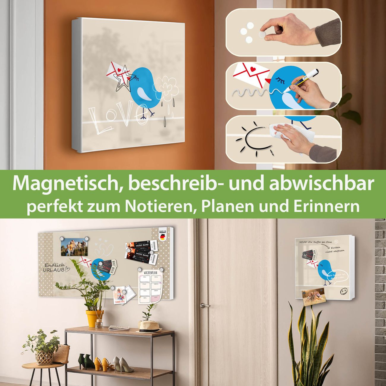 ✅ Magnetisch und mit Kreidestift beschreibbar, links angeschlagene TürOrdnung und Design in einem