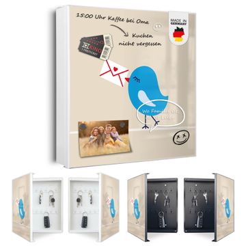 Bringe Ordnung und Eleganz in deinen Eingangsbereich mit dem banjado Schlüsselkasten Motiv Motiv Liebesbrief. Die moderne Schlüsselbox kombiniert funktionales Design mit hochwertiger Verarbeitung und wird so zu einem echten Hingucker in Flur, Büro oder Ferienwohnung. ✅ Stilvolle Schlüsselaufbewahrung mit Motiv Motiv Liebesbrief Der Design-Schlüsselkasten Motiv Motiv Liebesbrief bietet Platz für bis zu 32 Schlüssel, die auf 4 stabilen Reihen mit je 8 Haken übersichtlich verstaut werden. Mit seinen kompakten Maßen von 30 x 30 x 5 cm passt die Schlüsselbox perfekt auch in kleinere Räume. Der weiß lackierte Stahlkorpus mit links angeschlagenem Türscharnier harmoniert mit gedruckten Folie auf der Front und fügt sich nahtlos in jedes Wohnambiente ein. Ob als Schlüsselorganizer für Zuhause oder als praktische Lösung für Büros, Praxen und Gewerbe, der banjado Schlüsselkasten sorgt für Ordnung und Übersicht. Dank der magnetischen, mit Kreidestiften beschreibbaren Folie auf der Front kannst du Notizen anheften oder Termine direkt auf der Oberfläche festhalten. Die Schlüsselbox Motiv Motiv Liebesbrief zur Wandmontage wird inklusive Befestigungsmaterial geliefert und ist schnell angebracht. So hast du deine Schlüssel jederzeit griffbereit und zugleich stilvoll verstaut. Mit diesem banjado Schlüsselkasten Motiv Motiv Liebesbrief kombinierst du praktische Aufbewahrung mit stilvollem Wohndesign. Ob privat oder geschäftlich, die Schlüsselbox sorgt für mehr Ordnung, Übersicht und ein wohnliches Ambiente.Vorteile im Überblick