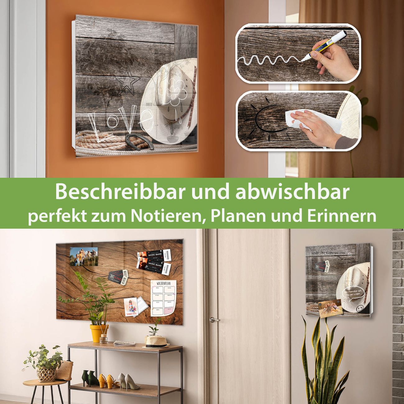 ✅ Magnetisch und mit Kreidestift beschreibbar, gehärtetes Glas, rechts angeschlagene TürOrdnung und Design in einem