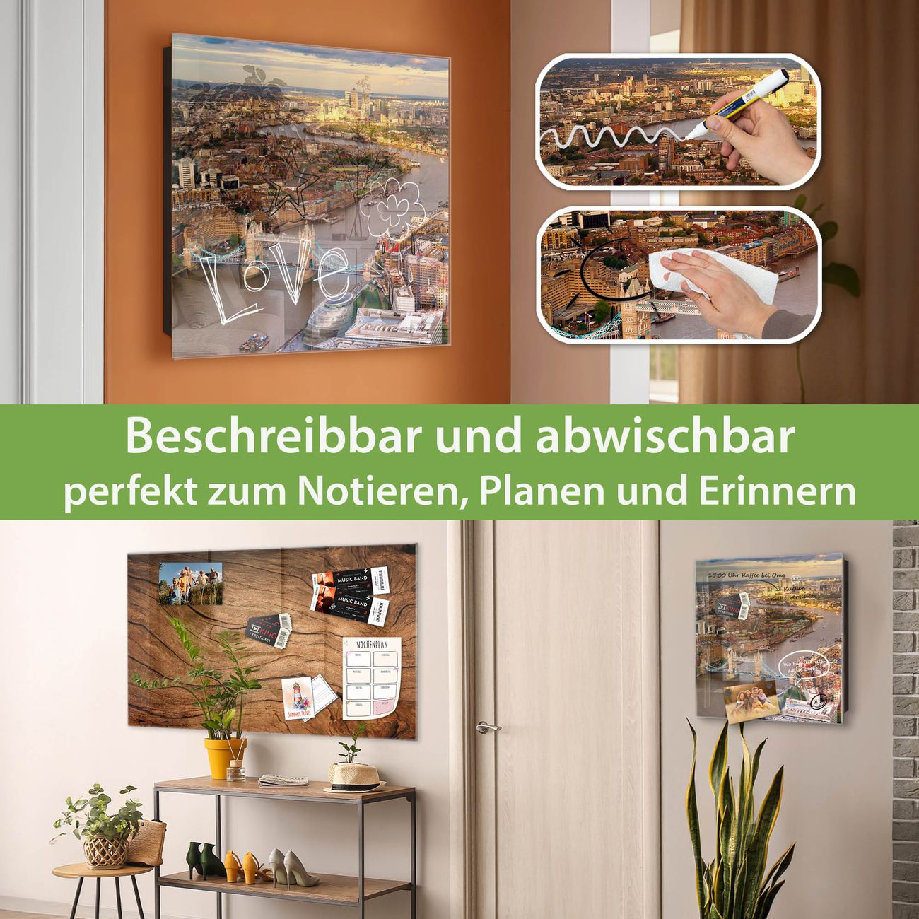 ✅ Magnetisch und mit Kreidestift beschreibbar, gehärtetes Glas, rechts angeschlagene TürOrdnung und Design in einem