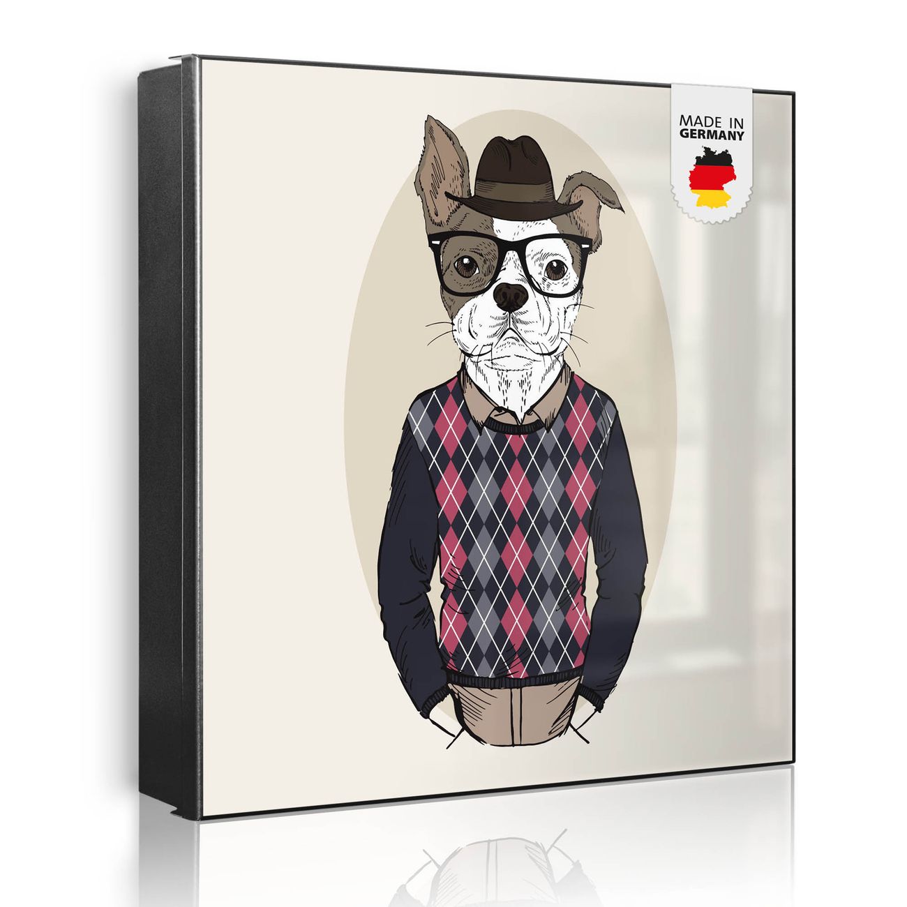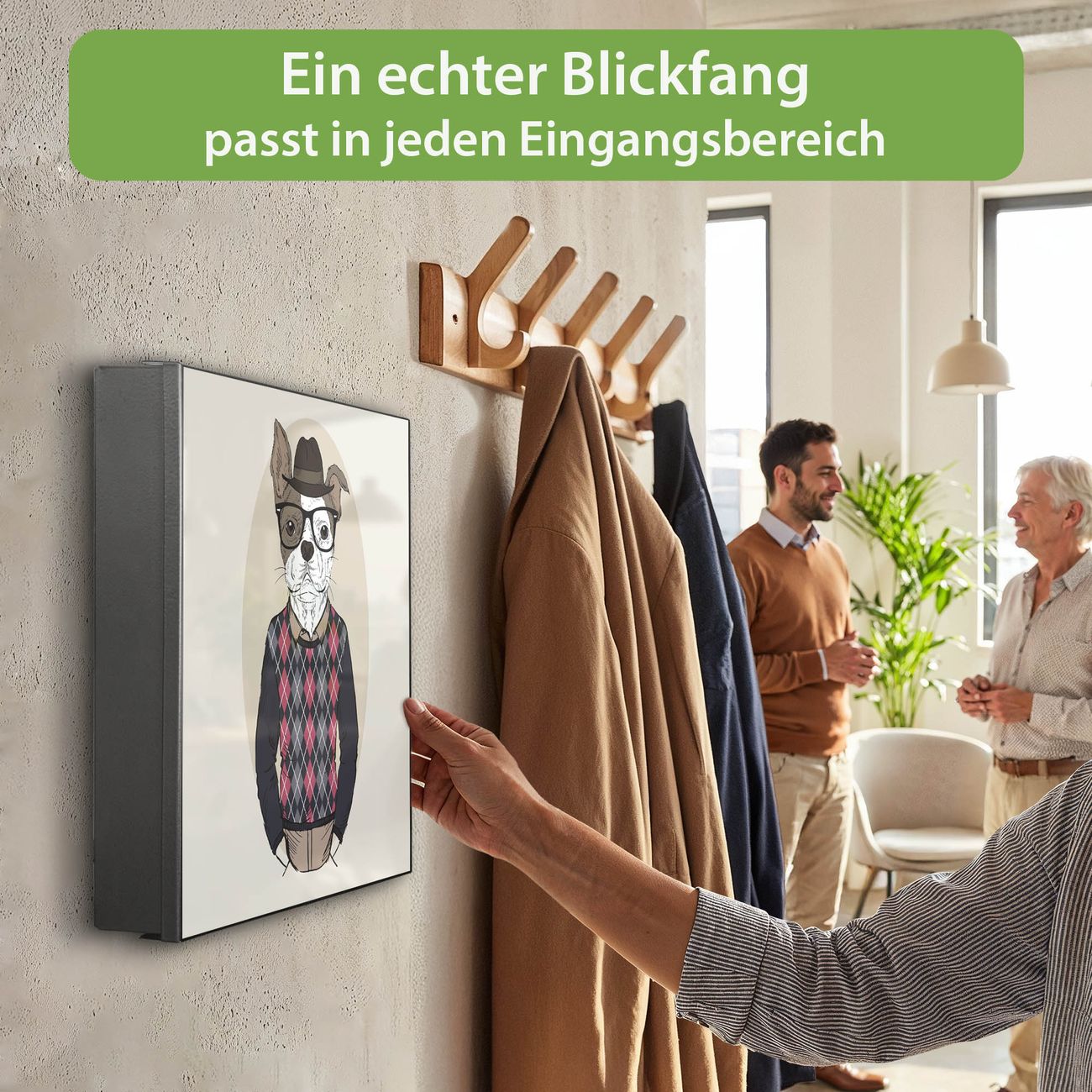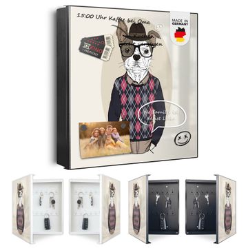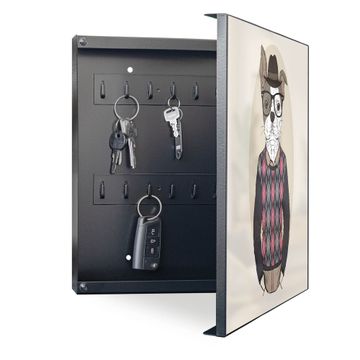 Bringe Ordnung und Eleganz in deinen Eingangsbereich mit dem banjado Schlüsselkasten Motiv Motiv Ludger. Die moderne Schlüsselbox kombiniert funktionales Design mit hochwertiger Verarbeitung und wird so zu einem echten Hingucker in Flur, Büro oder Ferienwohnung. ✅ Stilvolle Schlüsselaufbewahrung mit Motiv Motiv Ludger Der Design-Schlüsselkasten Motiv Motiv Ludger bietet Platz für bis zu 32 Schlüssel, die auf 4 stabilen Reihen mit je 8 Haken übersichtlich verstaut werden. Mit seinen kompakten Maßen von 30 x 30 x 5 cm passt die Schlüsselbox perfekt auch in kleinere Räume. Der schwarz lackierte Stahlkorpus mit rechts angeschlagenem Türscharnier harmoniert mit gedruckten Folie auf der Front und fügt sich nahtlos in jedes Wohnambiente ein. Ob als Schlüsselorganizer für Zuhause oder als praktische Lösung für Büros, Praxen und Gewerbe, der banjado Schlüsselkasten sorgt für Ordnung und Übersicht. Dank der magnetischen, mit Kreidestiften beschreibbaren Folie auf der Front kannst du Notizen anheften oder Termine direkt auf der Oberfläche festhalten. Die Schlüsselbox Motiv Motiv Ludger zur Wandmontage wird inklusive Befestigungsmaterial geliefert und ist schnell angebracht. So hast du deine Schlüssel jederzeit griffbereit und zugleich stilvoll verstaut. Mit diesem banjado Schlüsselkasten Motiv Motiv Ludger kombinierst du praktische Aufbewahrung mit stilvollem Wohndesign. Ob privat oder geschäftlich, die Schlüsselbox sorgt für mehr Ordnung, Übersicht und ein wohnliches Ambiente.Vorteile im Überblick