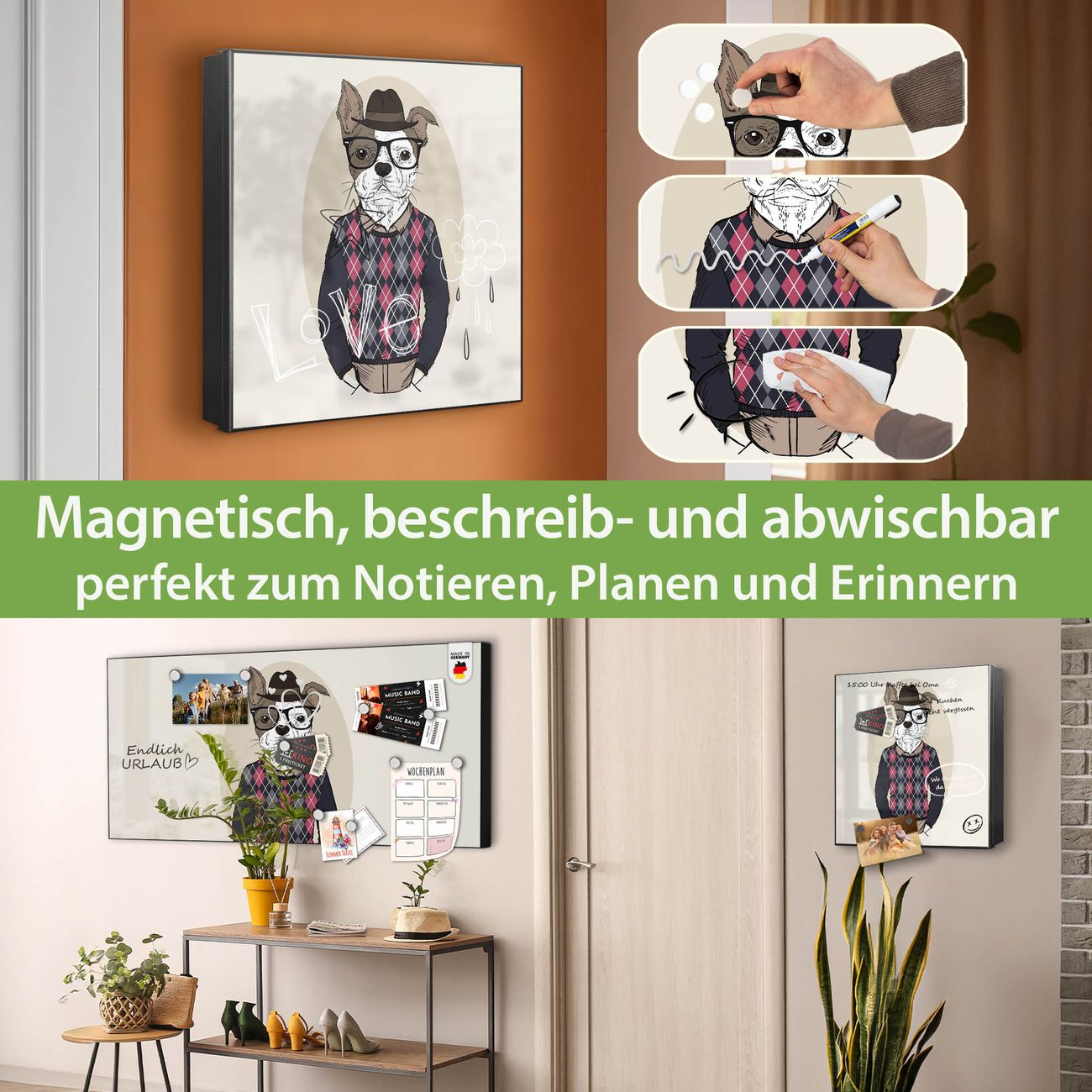 ✅ Magnetisch und mit Kreidestift beschreibbar, rechts angeschlagene TürOrdnung und Design in einem